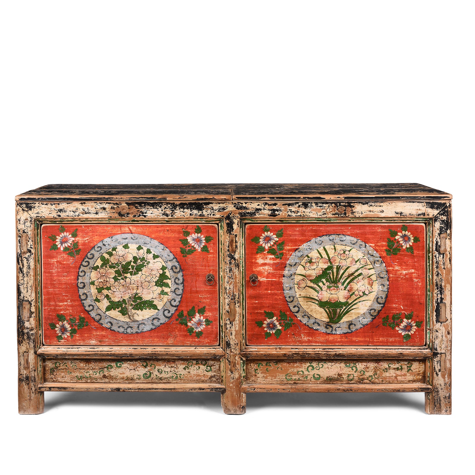 Antique 2 Door Painted Mongolian Sideboard - Ca 1920 | Indigo Antiques