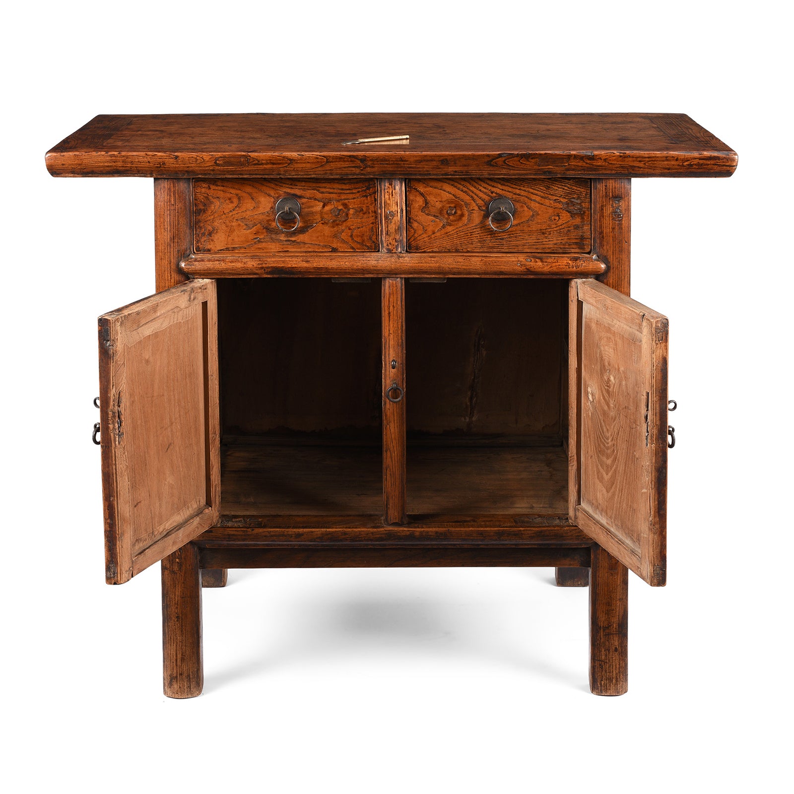 A good Qing dynasty locust wood cabinet from Gansu. Locust wood is now extinct and is often confused with elm wood. Locust wood develops a beautiful patina & colour with age. This piece also has a wonderful prominent grain structure.
