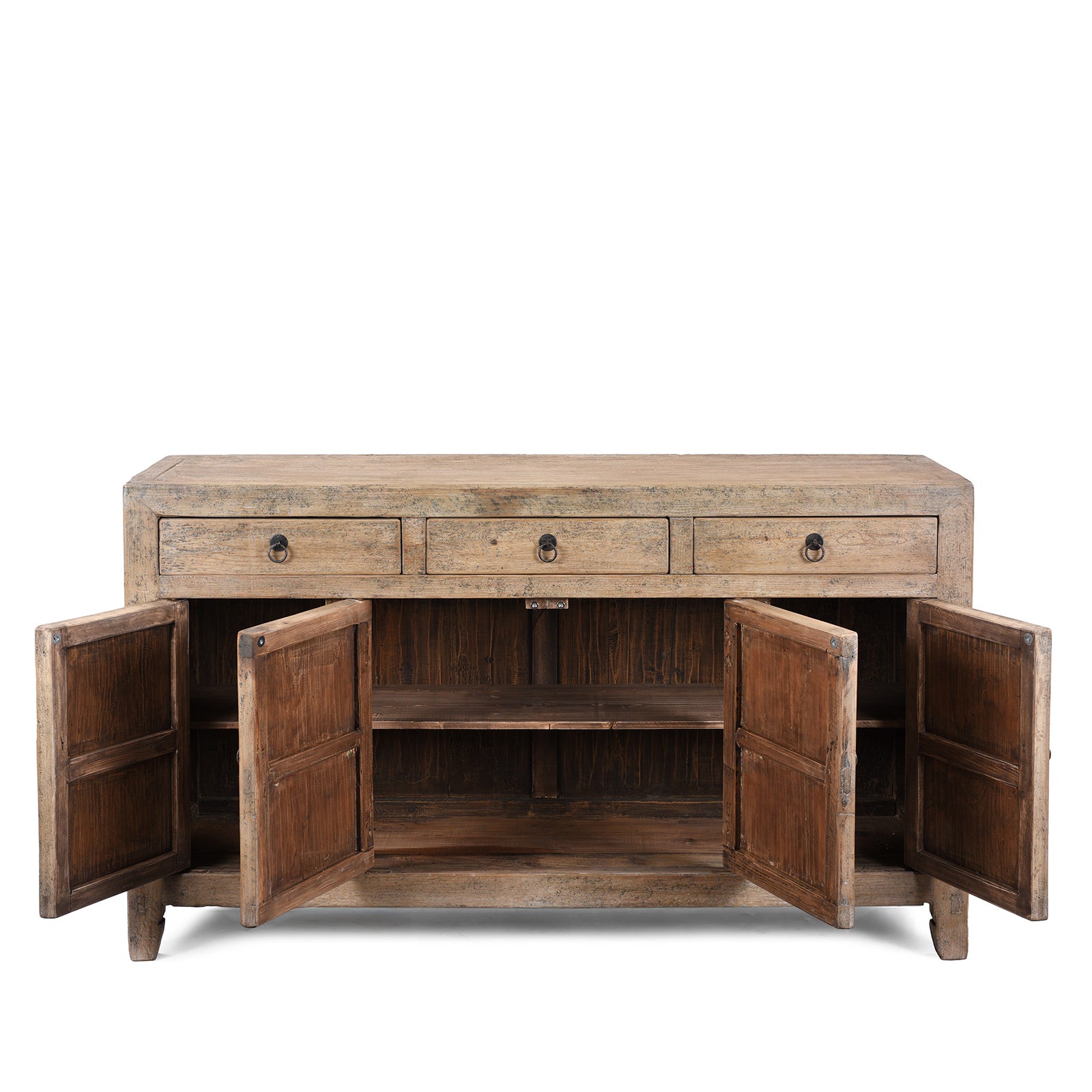 This solid and understated sideboard comes from Dongbei (northeast China) and dates to around 1940. Crafted from pine wood and later bleached to highlight the soft grain, it showcases the clean, practical aesthetic typical of northern Chinese furniture. Its robust form and well-balanced proportions make it an ideal choice for contemporary interiors seeking timeless simplicity and storage versatility.