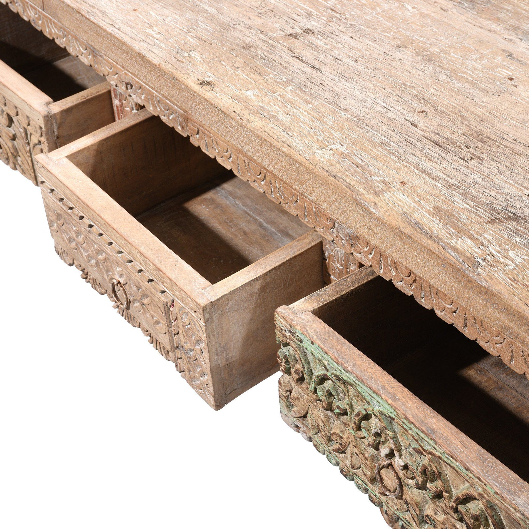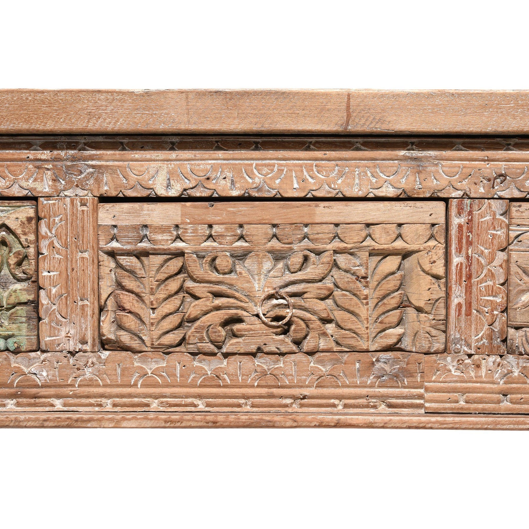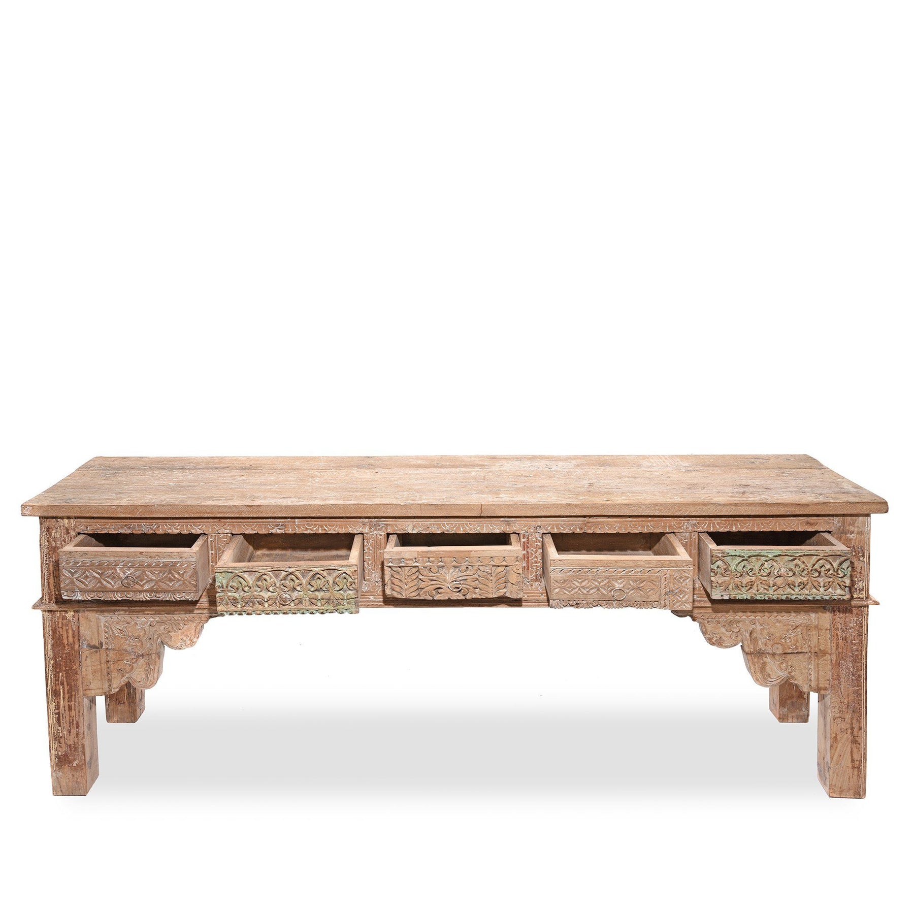 This long 5 drawer console table is made from reclaimed wood which is salvaged from old buildings in Rajasthan and Gujarat. It is decorative, functional, extremely durable and environmentally friendly.