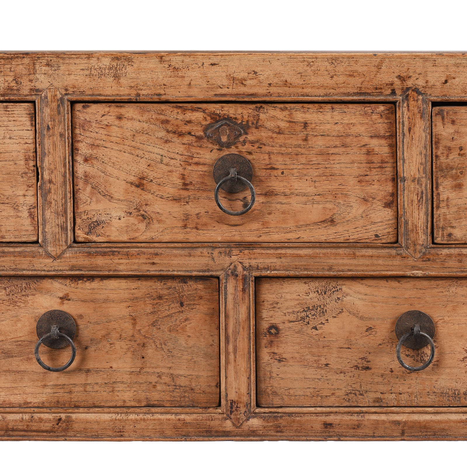This seven drawer console table is from Shanxi and has a beautifully patinated top. It's the perfect size for a hallway or smaller room and dates to the 19th century. This table is constructed from beautifully patinated elm wood (yumu).