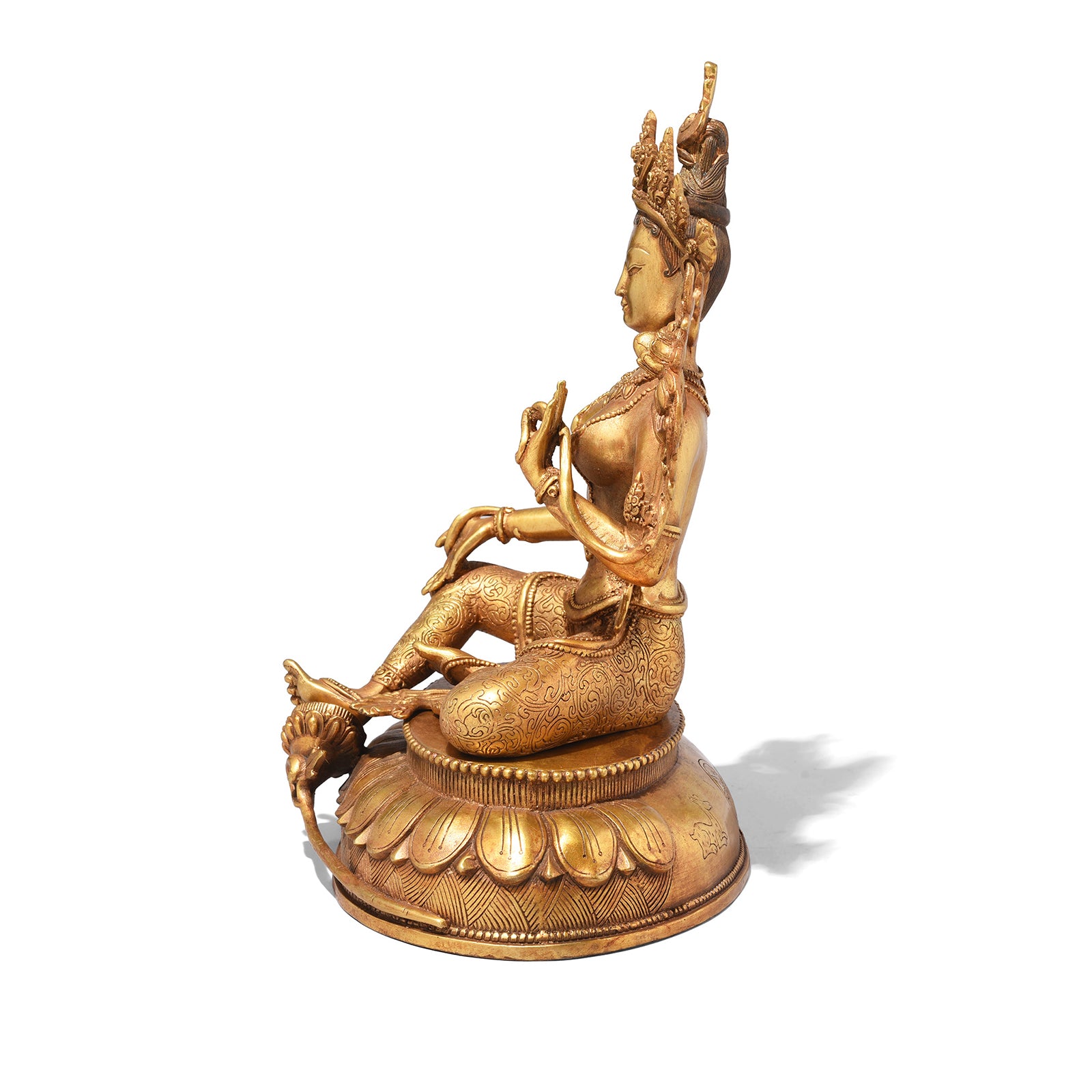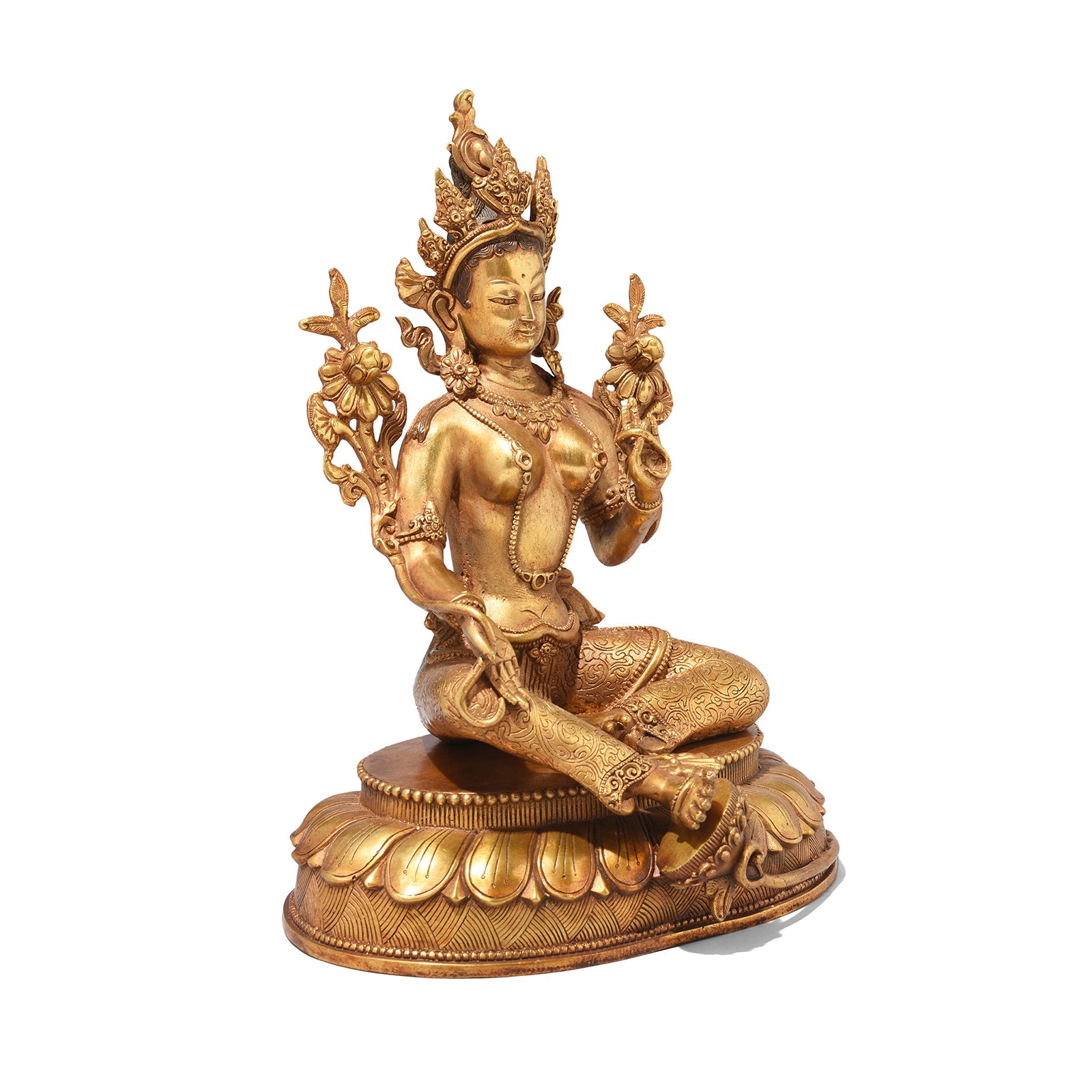 A statue of the Tibetan goddess Tara in Gilt Bronze.