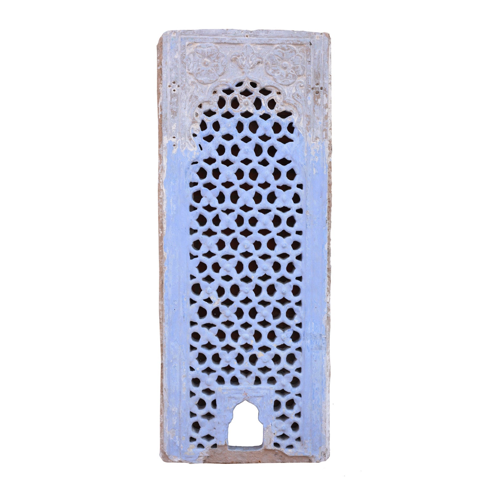 Blue Painted & Limed Stone Jali Panel From Rajasthan - 19th Century