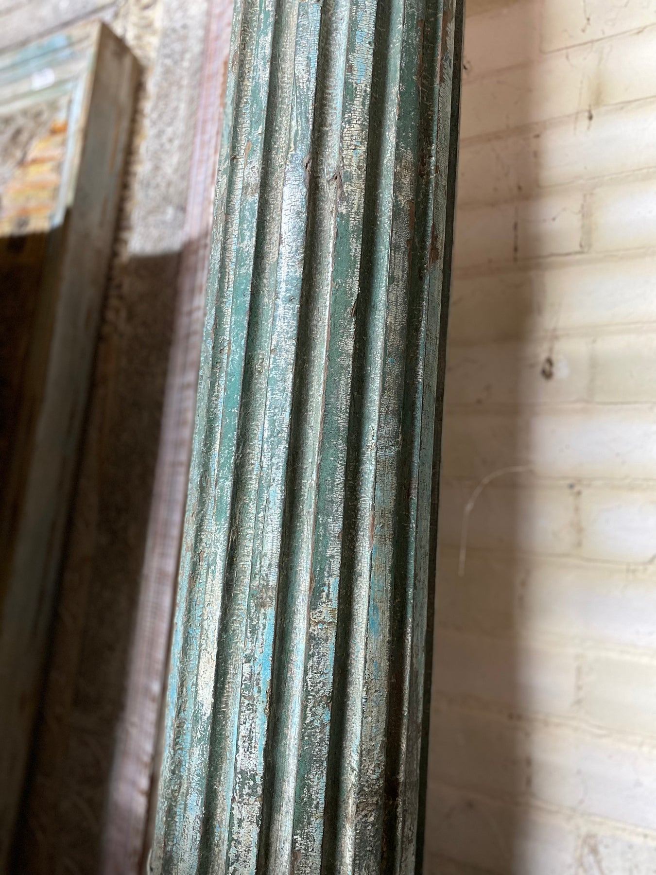 Dating from mid 19th century - these pillars have lovely original crackled turquoise paint. Suitable for use indoors or in a garden. They would make a very dramatic entrance to a property.