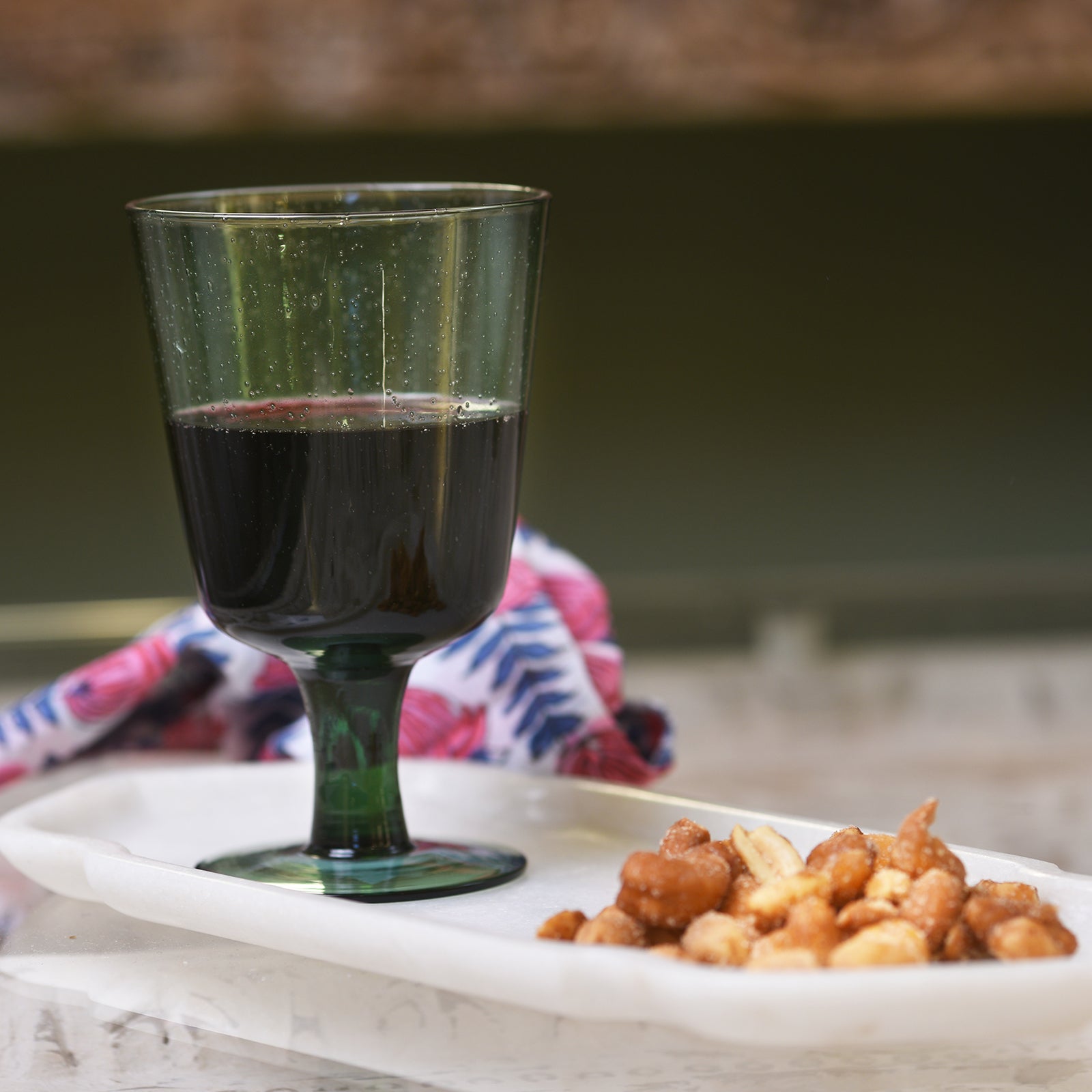 Indian Hand Carved White Marble Serving Plate With Nuts & a Glass of Red Wine | Indigo Antiques