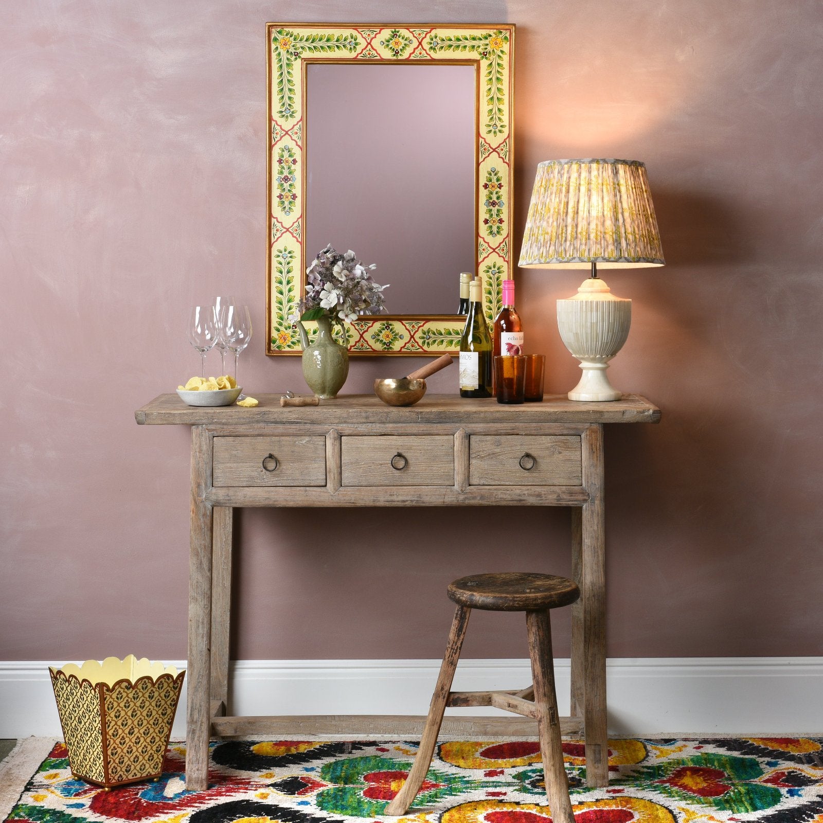 Lifestyle Of Antique Three Drawer Farmhouse Console Table With Drawers - | Indigo Antiques