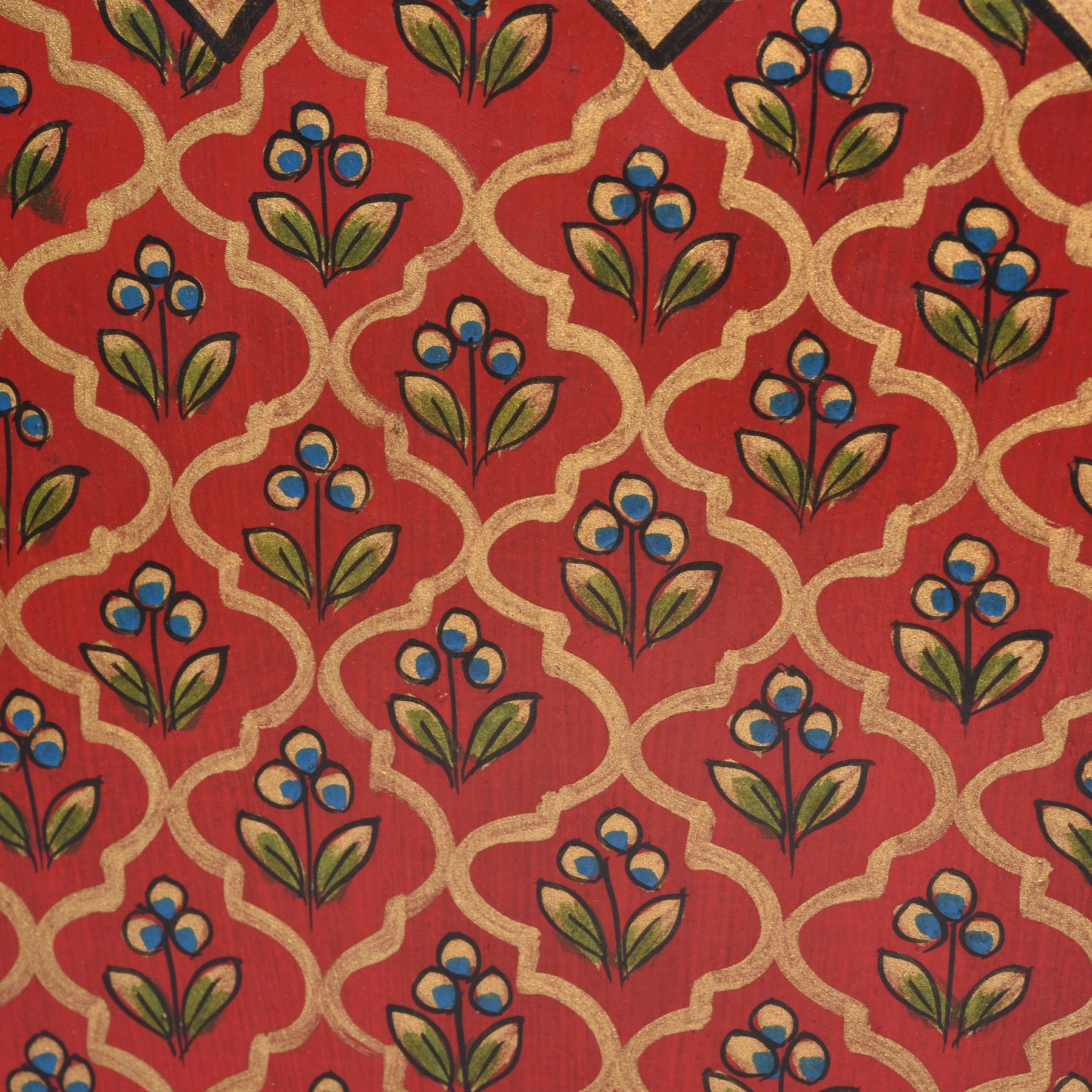 Detail from a Vintage Red Painted Indian Toleware Planter made from Recycled Metal | Indigo Oriental Antiques