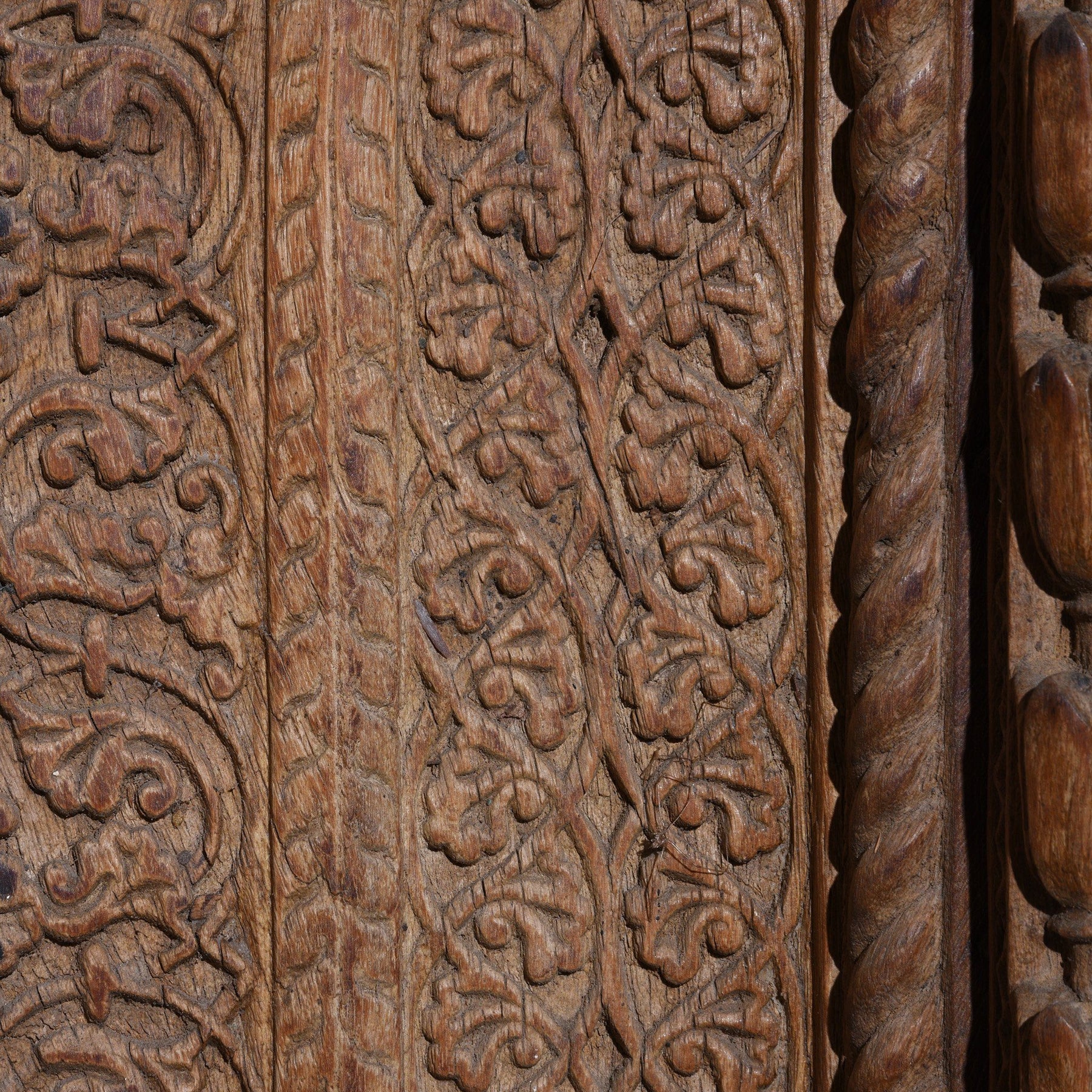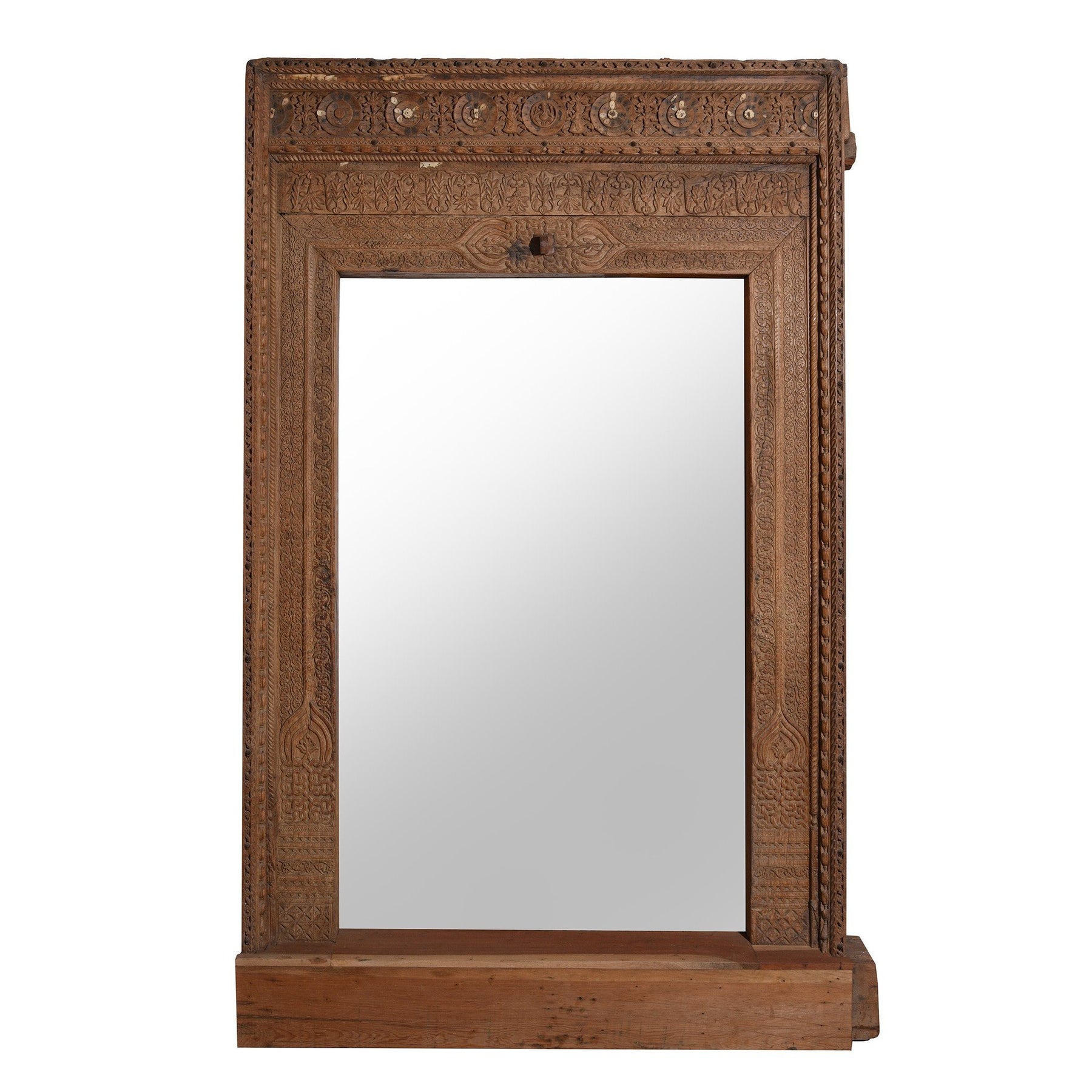 This magnificent mirror, crafted from exquisitely carved teak, was sourced from a Rajasthani Haveli and dates back to the 18th century. Its remarkable size and ornate design make it a stunning addition to any space. Its weight is a testament to its impressive craftsmanship.