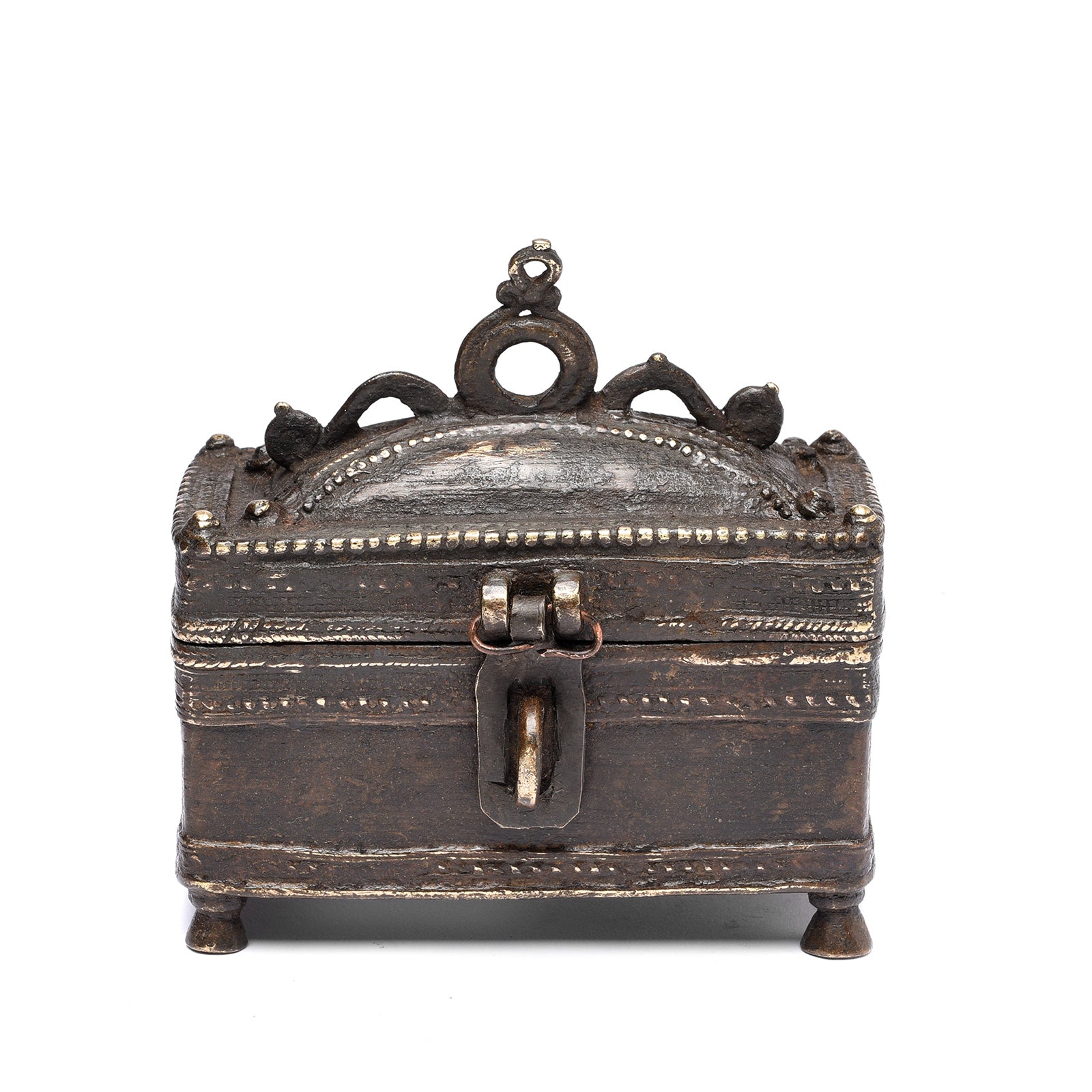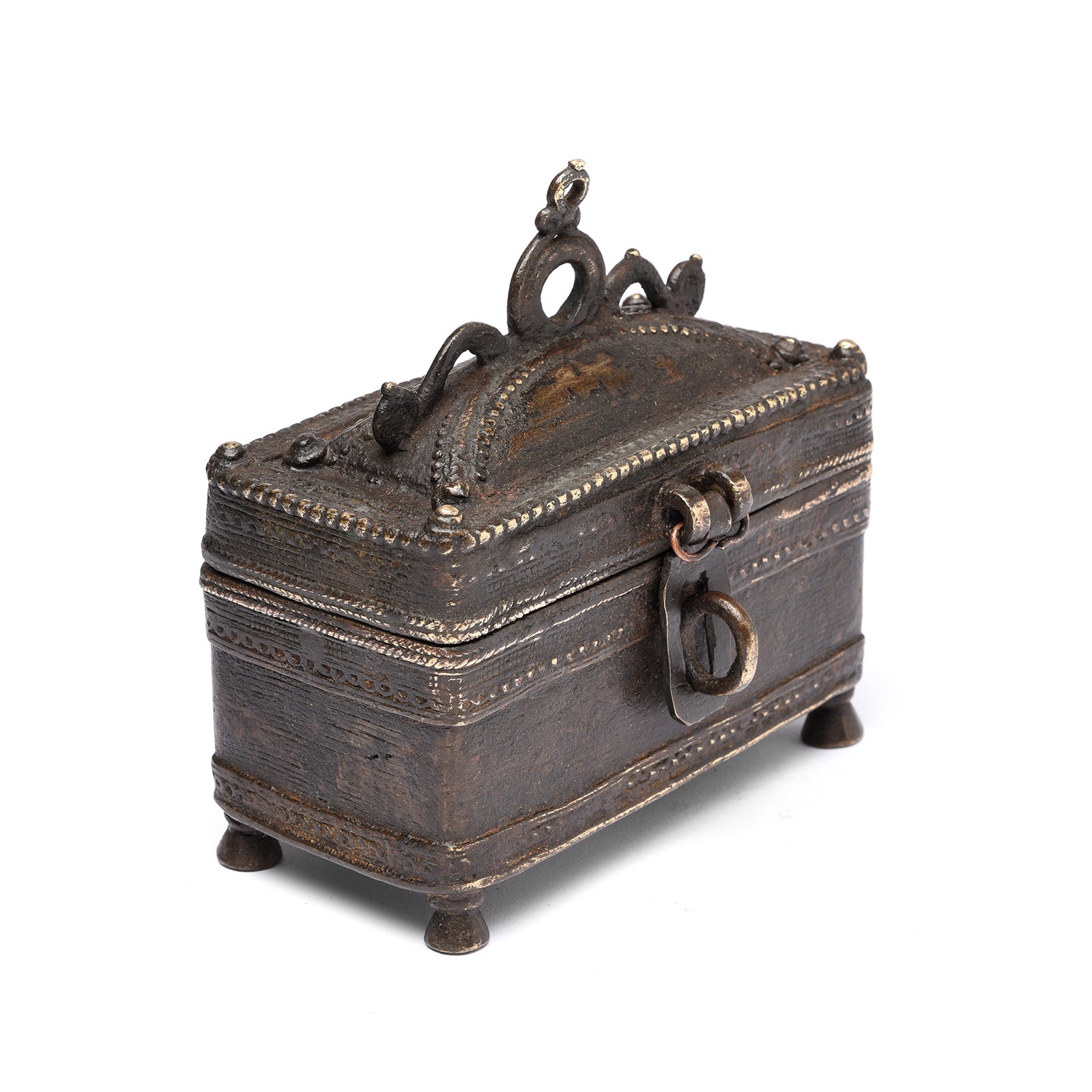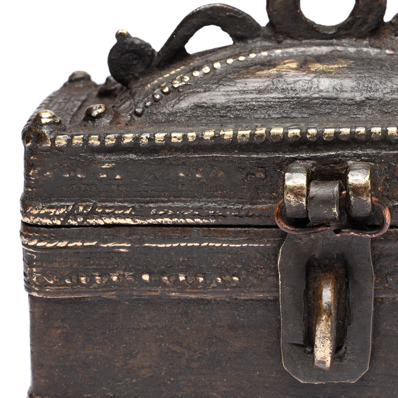 This old brass money box is from the Dhokra Damar tribes of Orissa in North East India. This style of Dhokra work dates to the late 19th & early 20th centuries. These caskets would have been used daily by families for keeping cash and valuables.