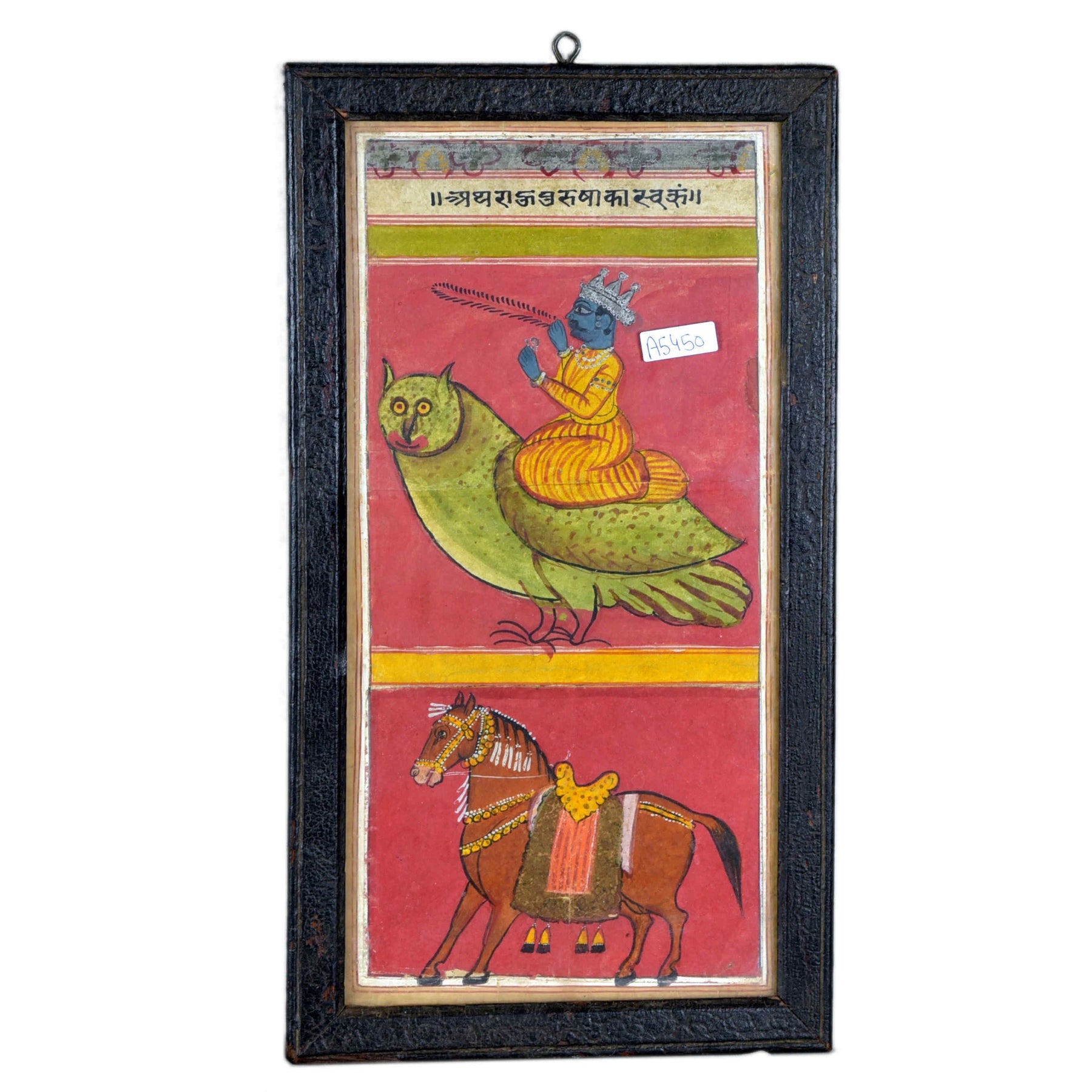 Water colour painting in Original Frame - Lord Krishna from Rajasthan - Circa 80 yrs Old
