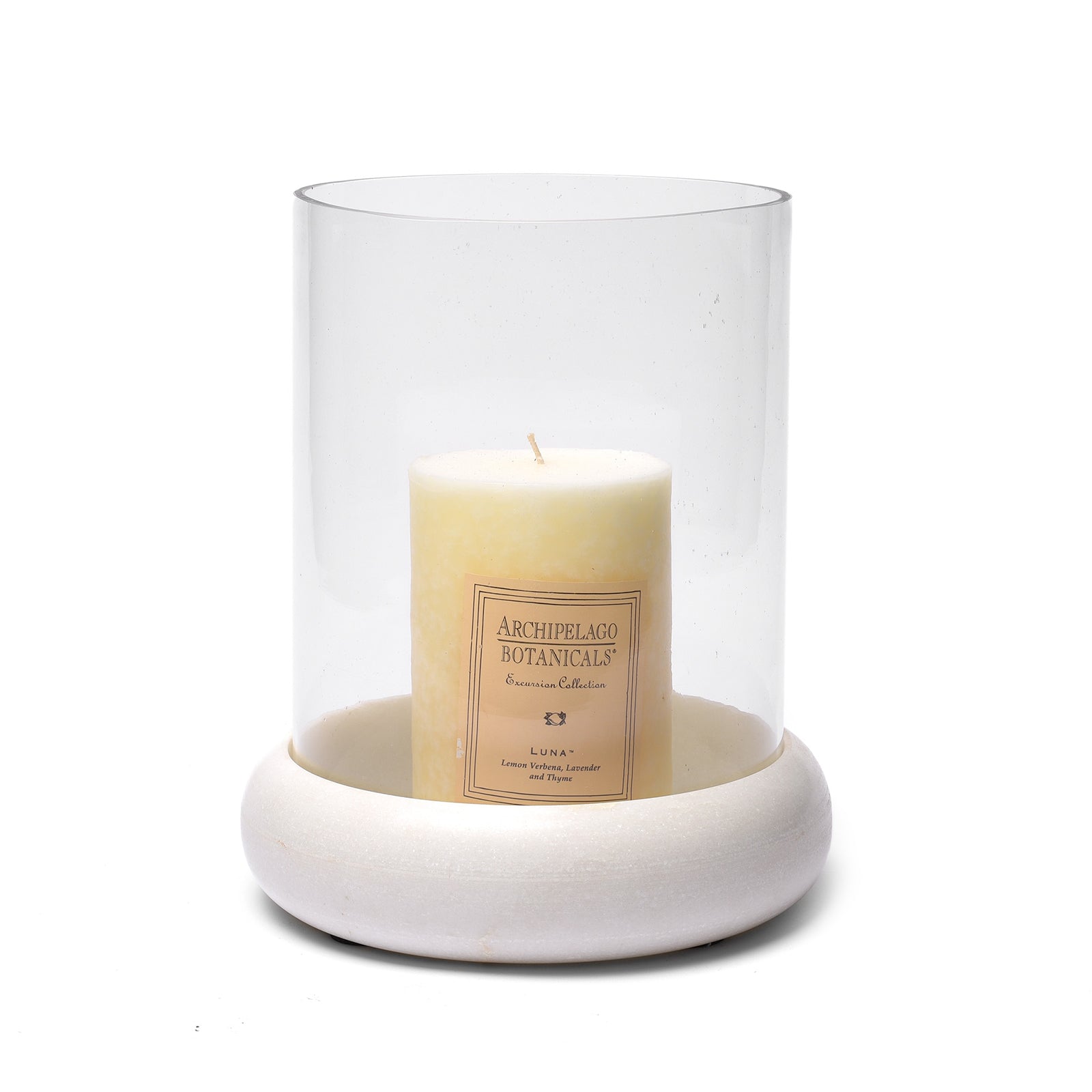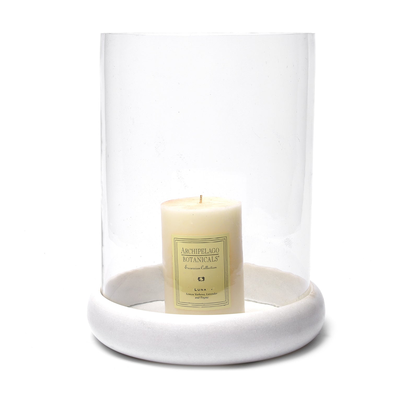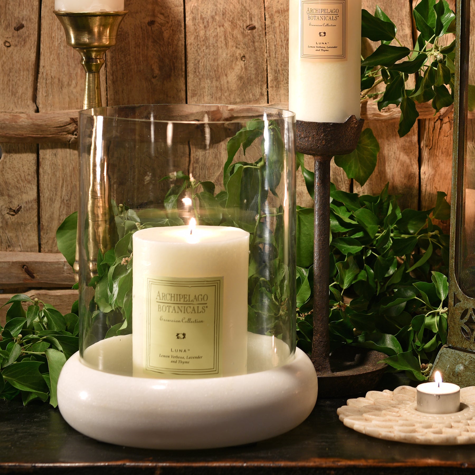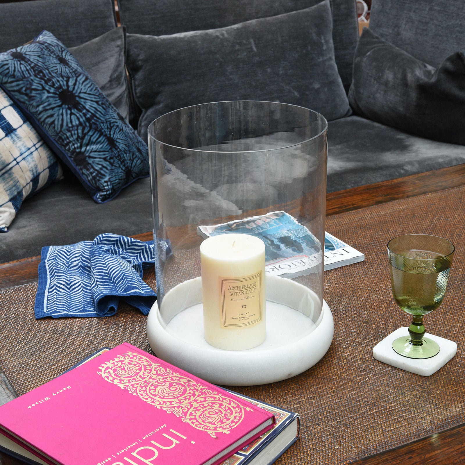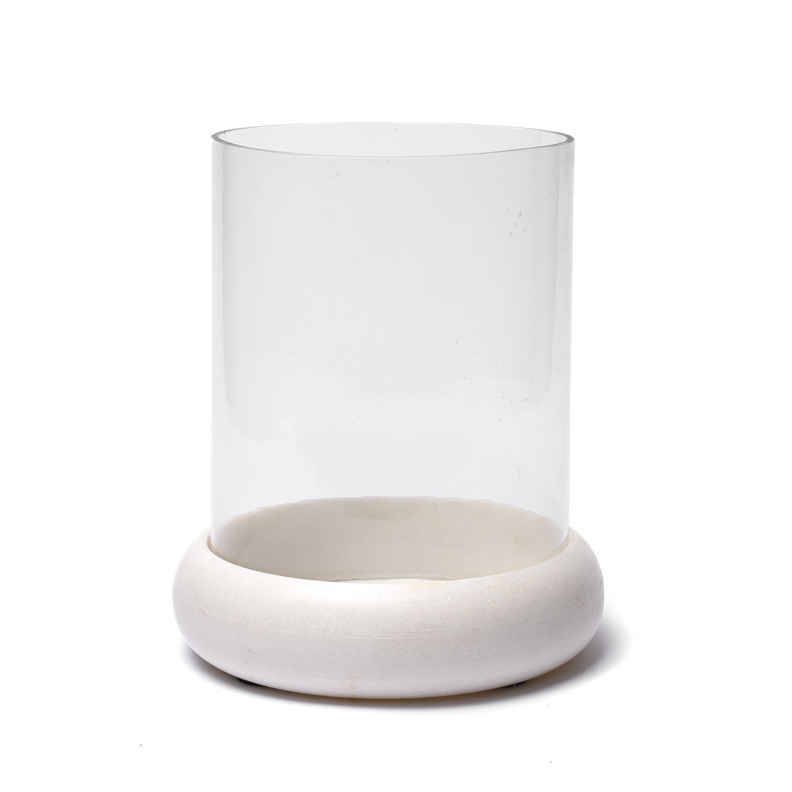 Glass & Marble Hurricane Lamp - Marble base beautifully carved in white marble by skilled craftspeople in Udaipur using traditional methods. They are then polished by hand making the marble smooth to the touch.