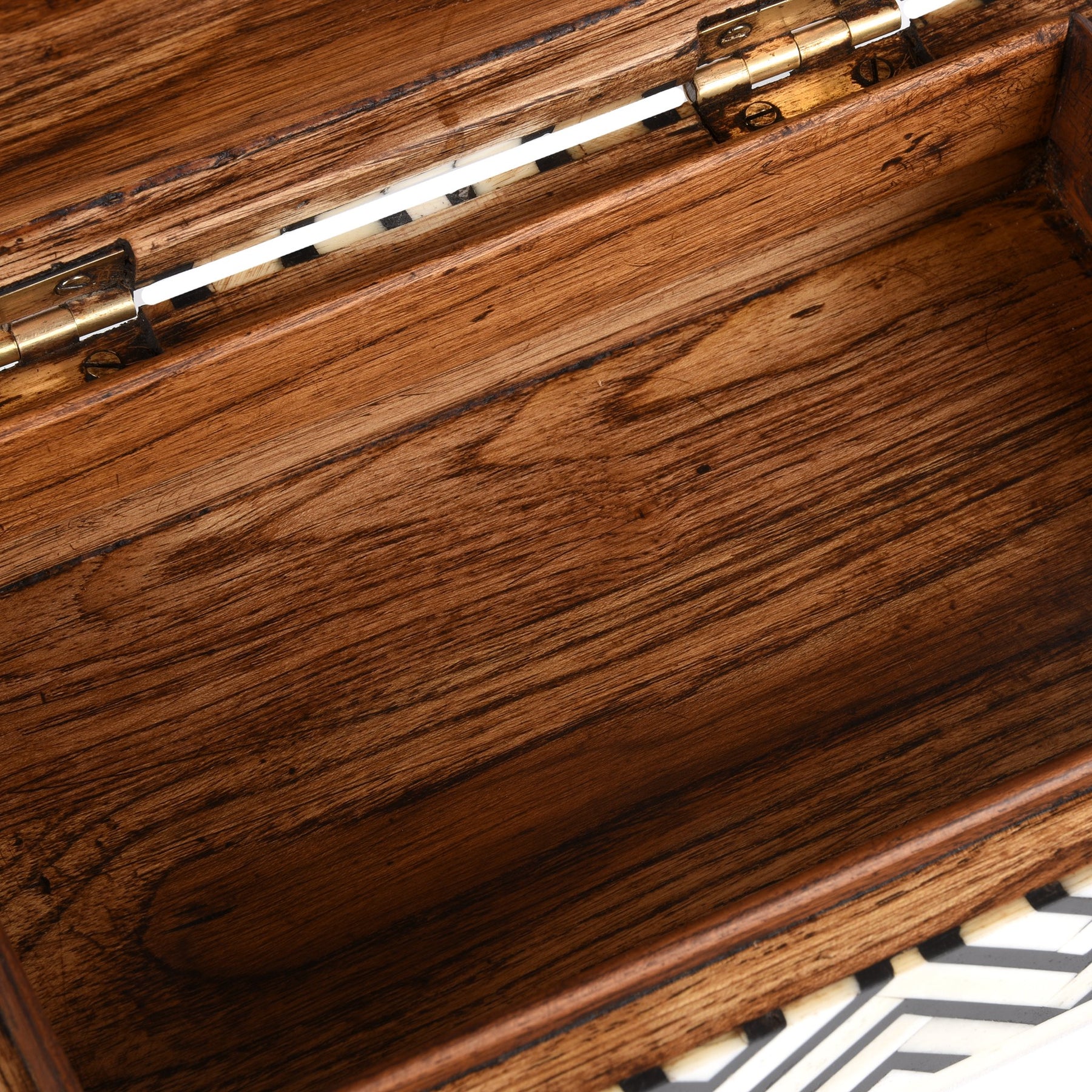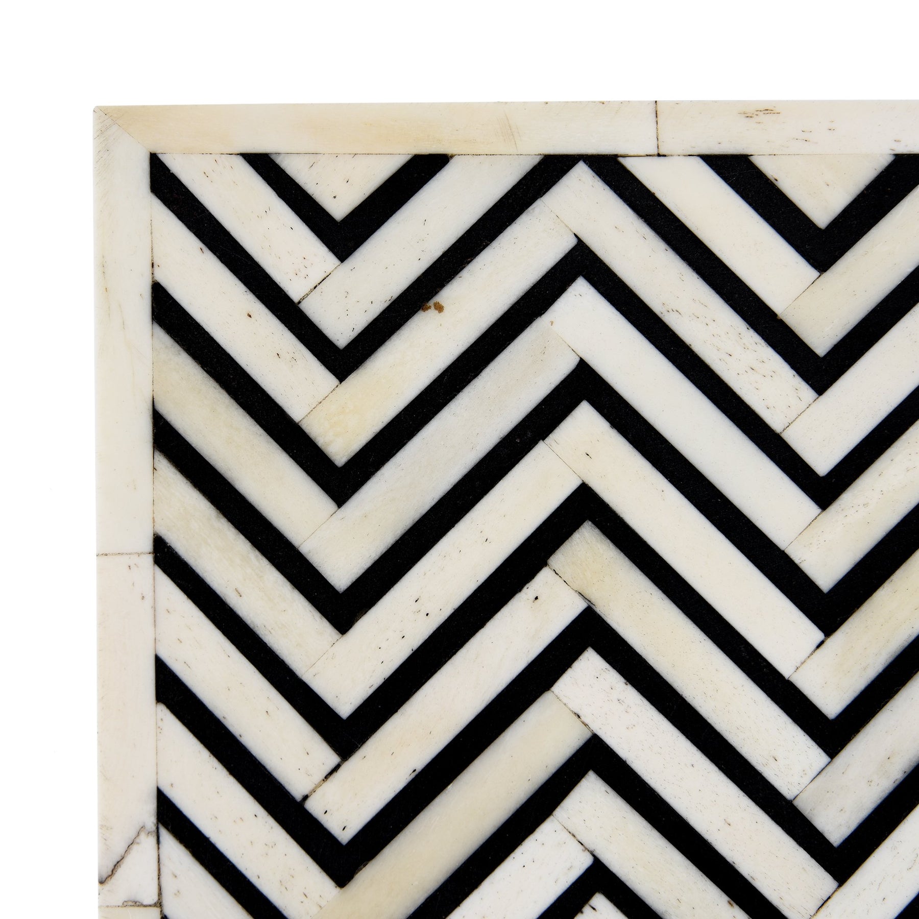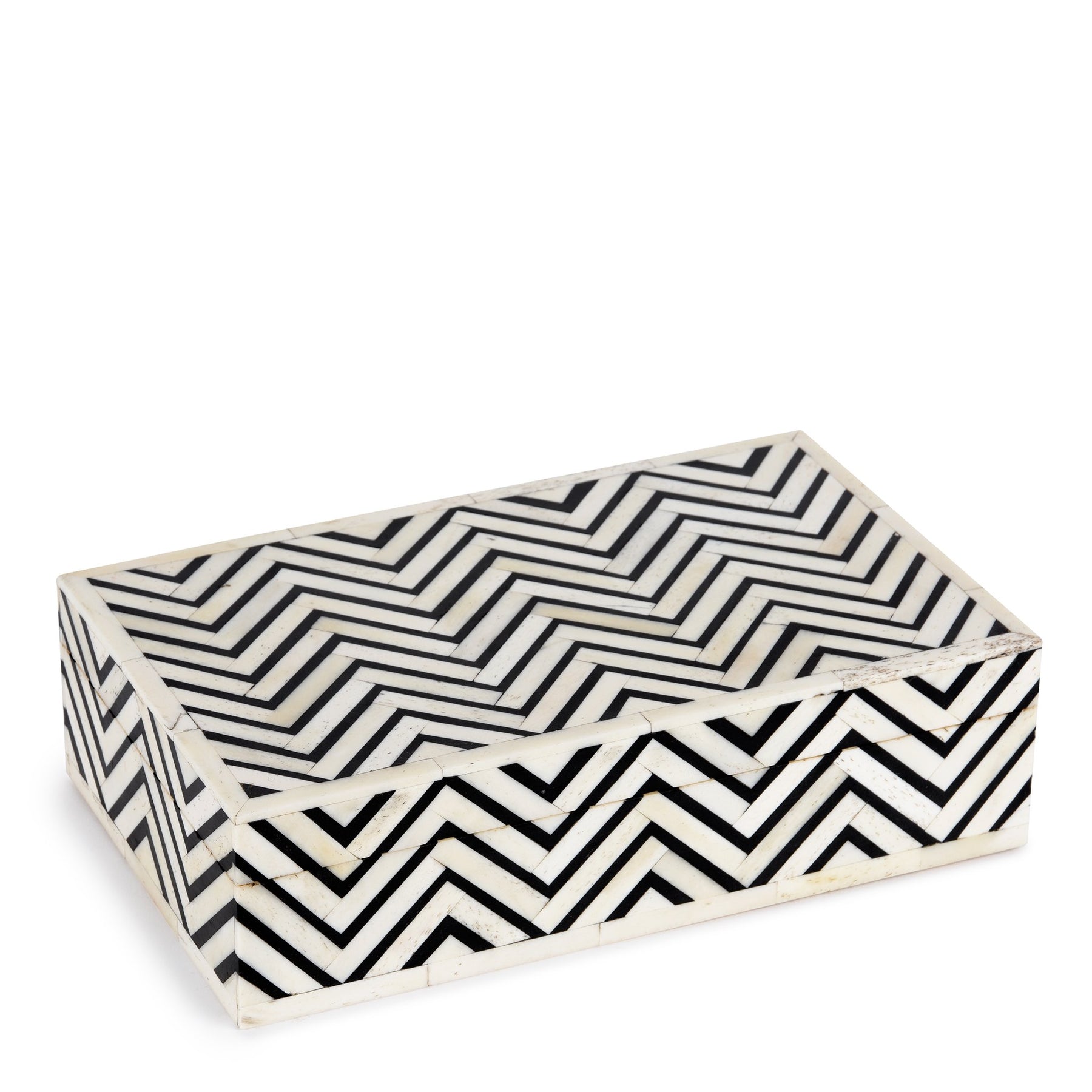 This bone inlay box features a black and white chevron design that would fit into any home or office. Its size and design makes it very versatile and it can be used for jewelry, sewing bits or as even as a keepsake box.