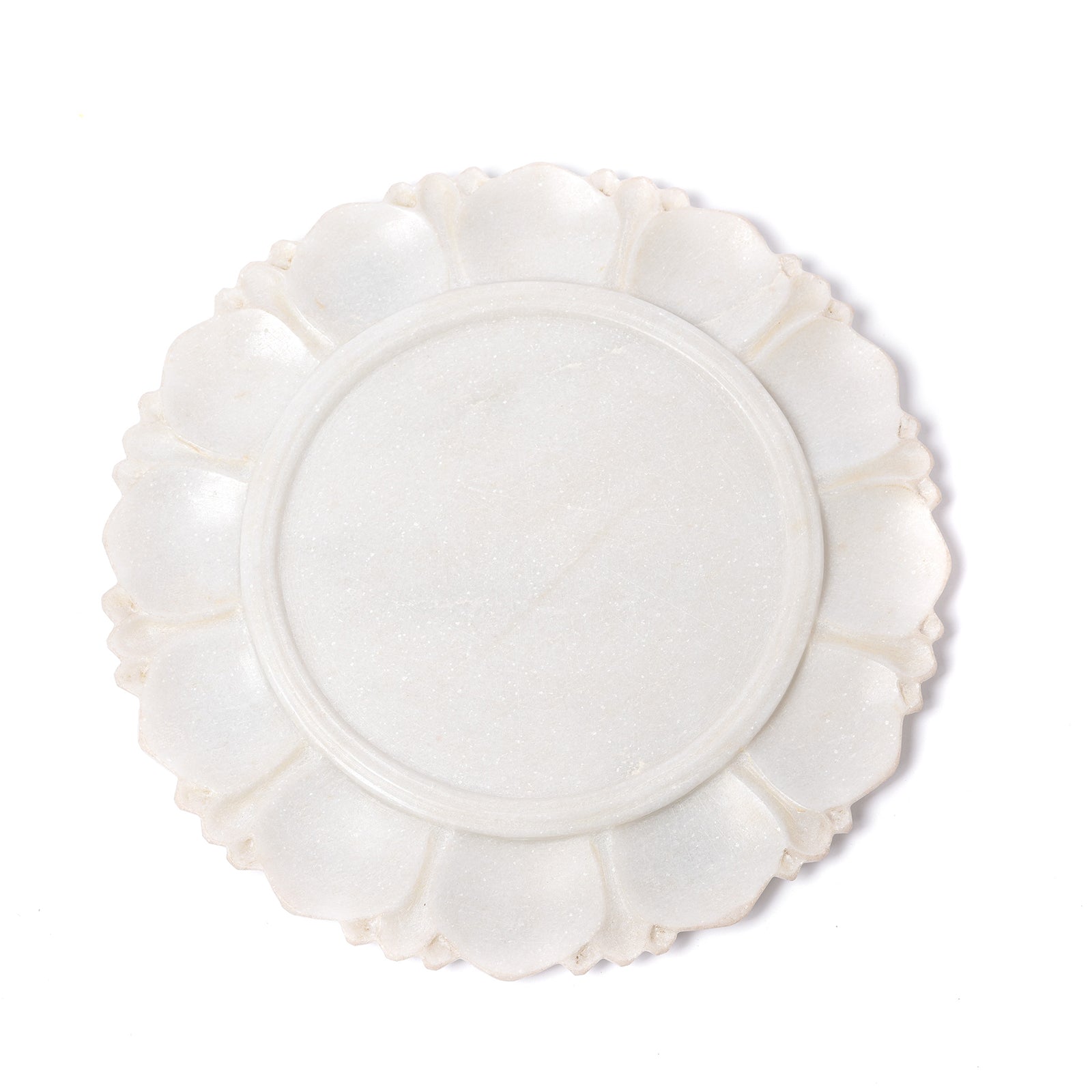 These decorative Indian plates are carved in the shape of a flower. They are hand carved in white marble by skilled craftspeople in Udaipur using traditional methods. They are then polished by hand making the marble smooth to the touch.