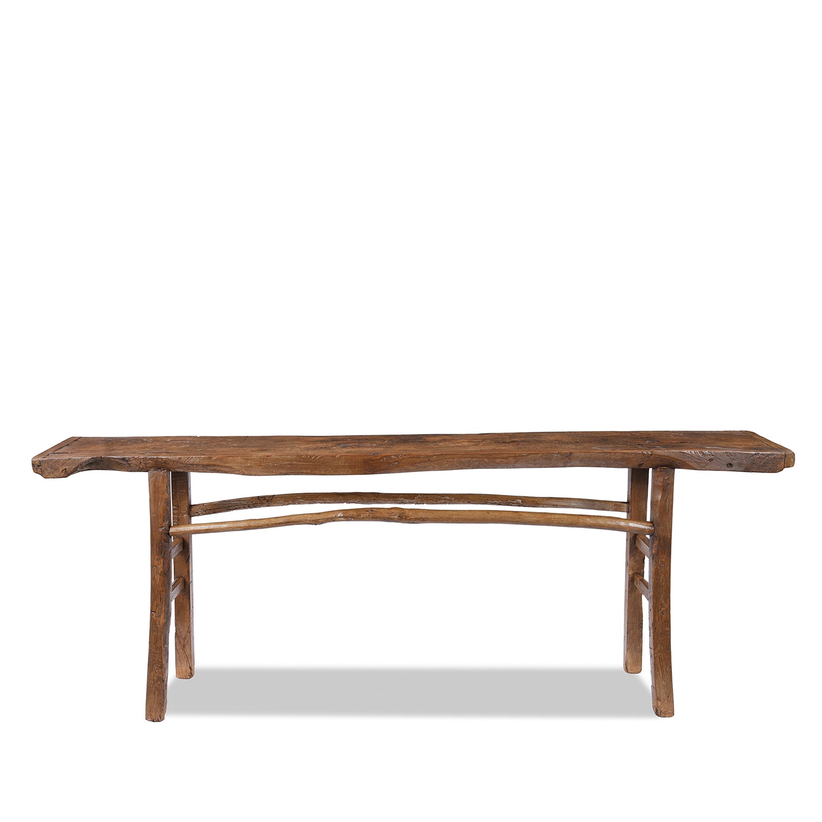 Altar tables were used for ancestor worship in China. Usually a family ancestor portrait would be hung above the table & joss sticks lit & placed on the table for the well being of the household. This particular piece has a lovely bleached rustic look. It is a fairly modern construction made using old wood and traditional carpentry techniques.