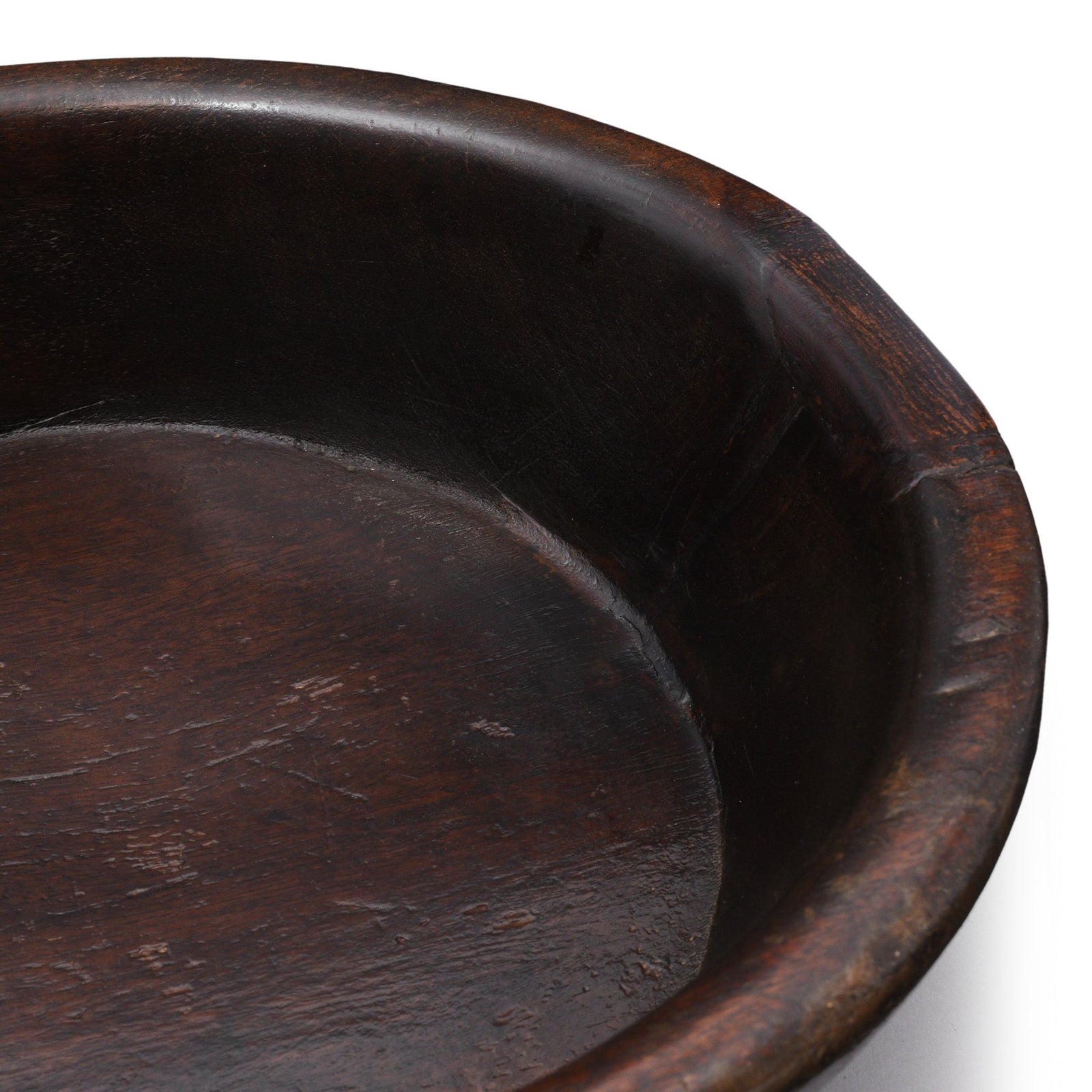 This original parath bowl, crafted in the early 20th century is made from a single piece of sturdy teak. These bowls were traditionally used for mixing dough to create chapatti and paratha bread. The rich patina on our old parath bowls is a result of years of regular use, making them a valuable addition to any kitchen. This one was originally from Rajasthan.