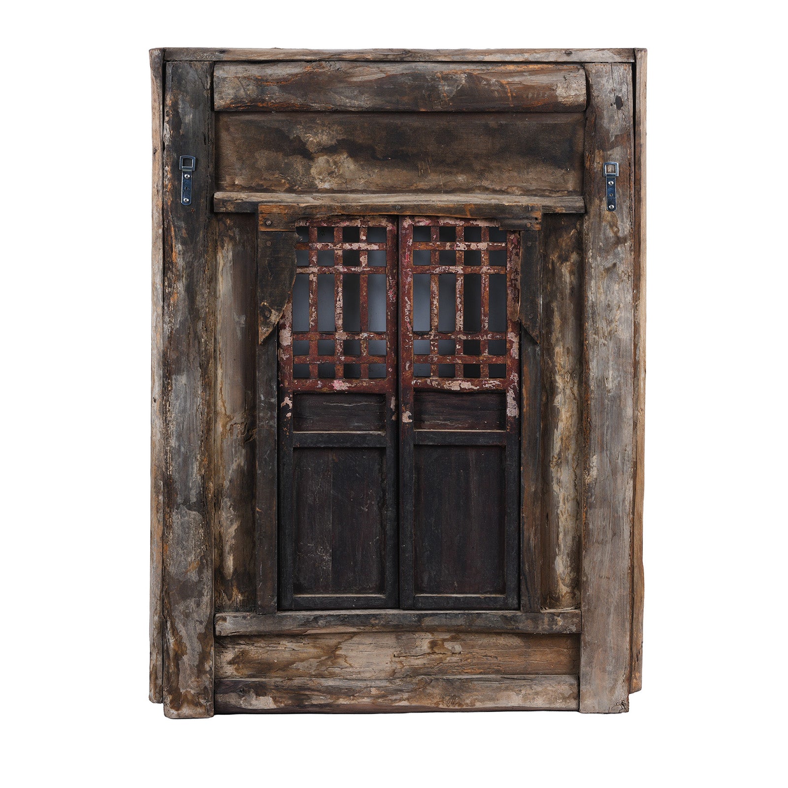 With its architectural framing and sculpted panelwork, this window makes a striking wall feature or can be incorporated into creative interior design projects. The robust frame speaks to its traditional joinery, offering both decorative richness and historical character.