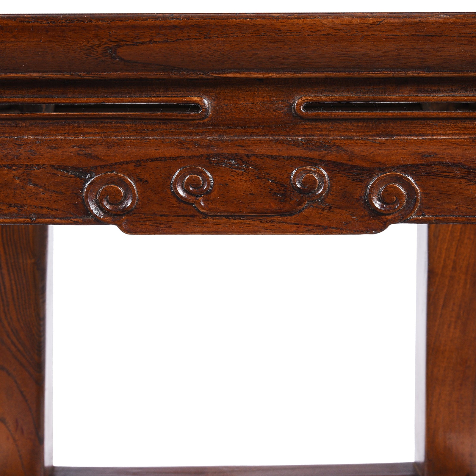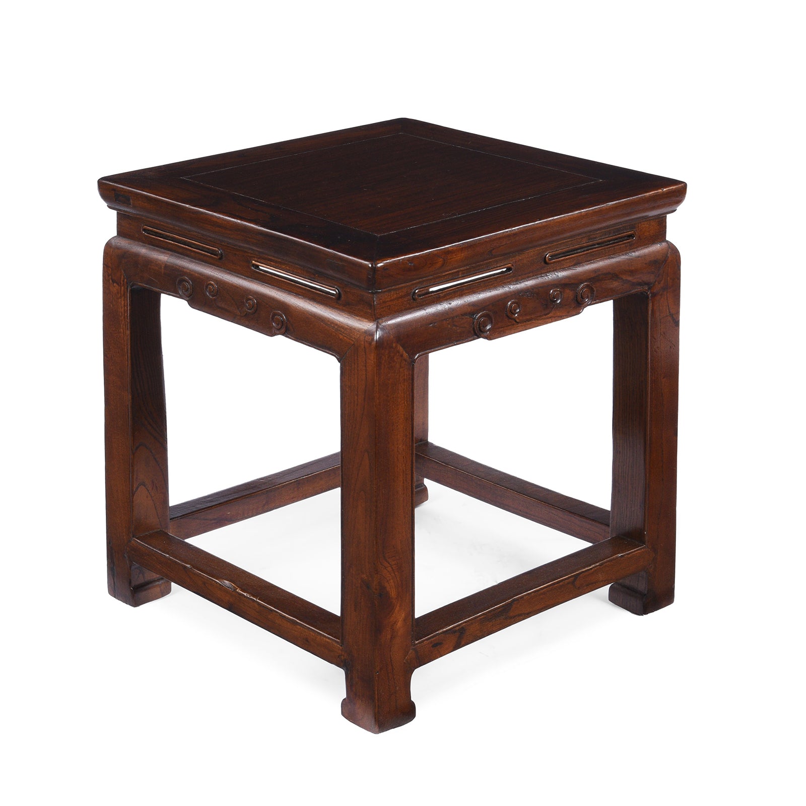 These antique Chinese side tables are made from red elm (jumu) and would have been used as stools or side tables in the 19th century. The style is classic of Jiangsu province, an area that uses predominantly red elm. Red elm (jumu / 榉木), also known as zelkova or 'southern elm' is considered a superior wood to yumu, its northern cousin.