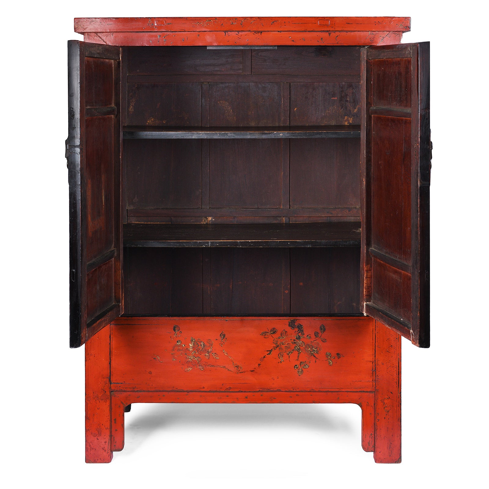 The vibrant red lacquer which is made from the sap of the rhus verniciflua tree, makes a striking background for intricate floral designs adorned with gold leaf. These cabinets would have been incredibly expensive and time consuming to create. According to historic records, lacquer furniture was historically fifteen times more expensive than hardwood furniture which is now highly valued by collectors.