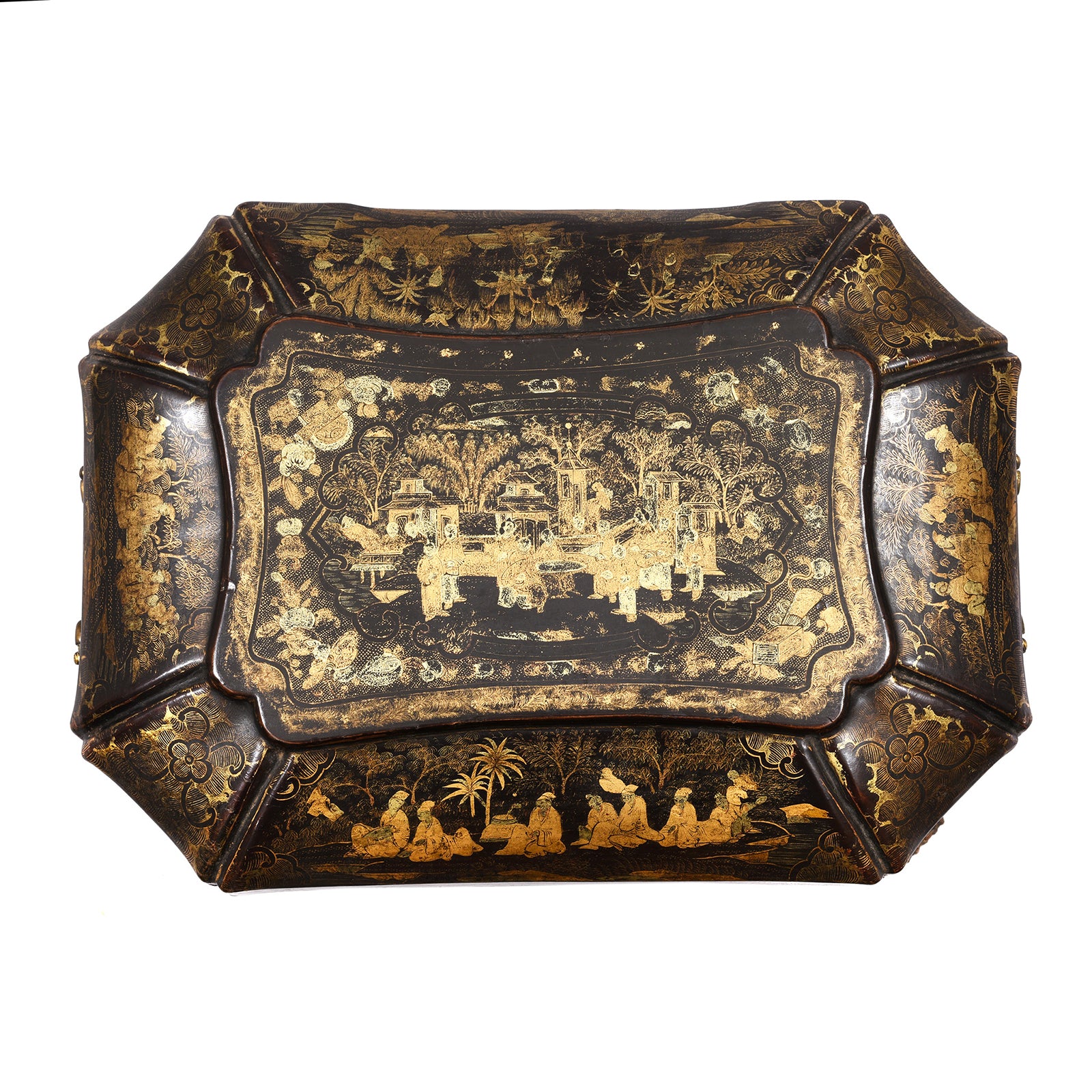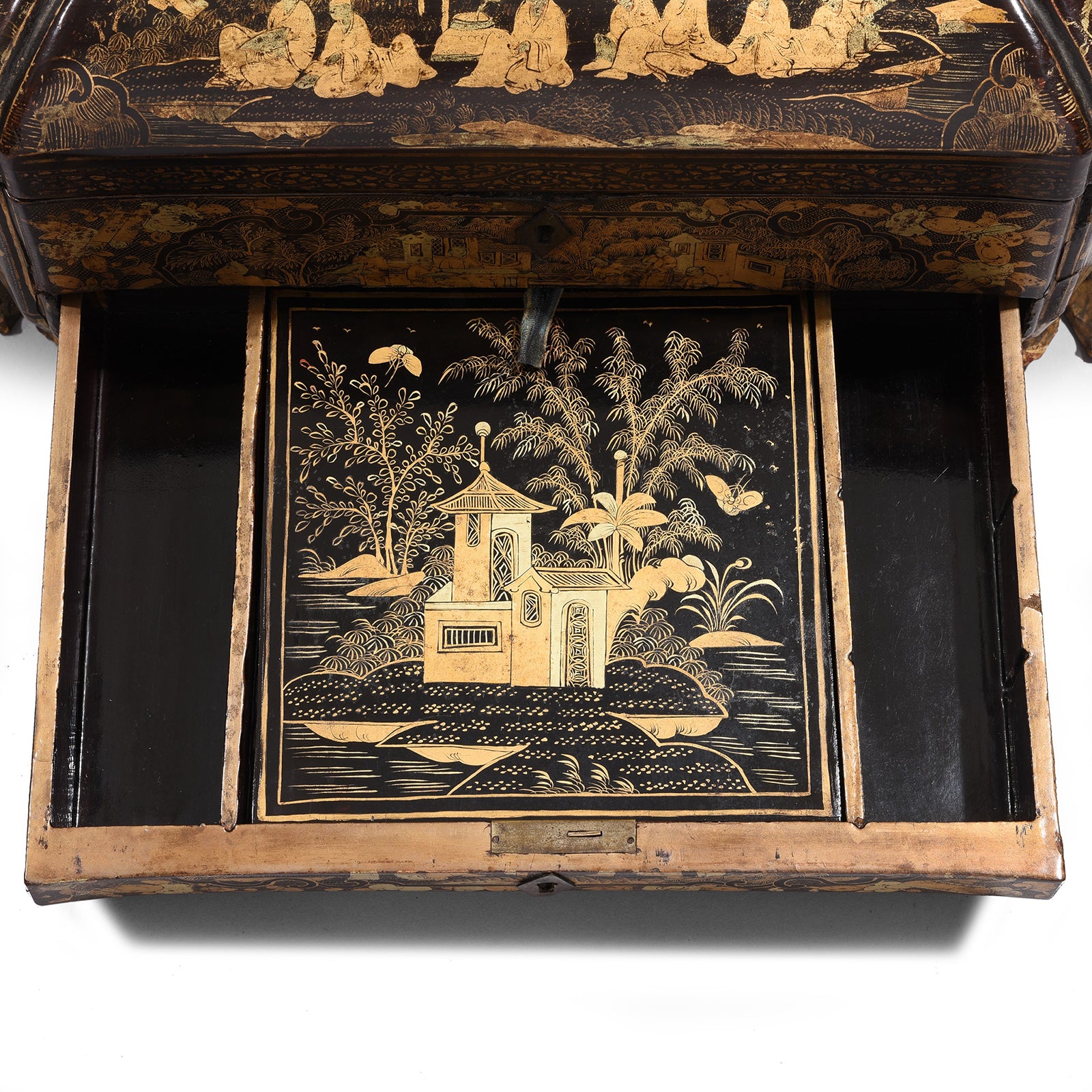 Gilt Black Lacquer Chinese Export Sewing Box - Early 19th Century