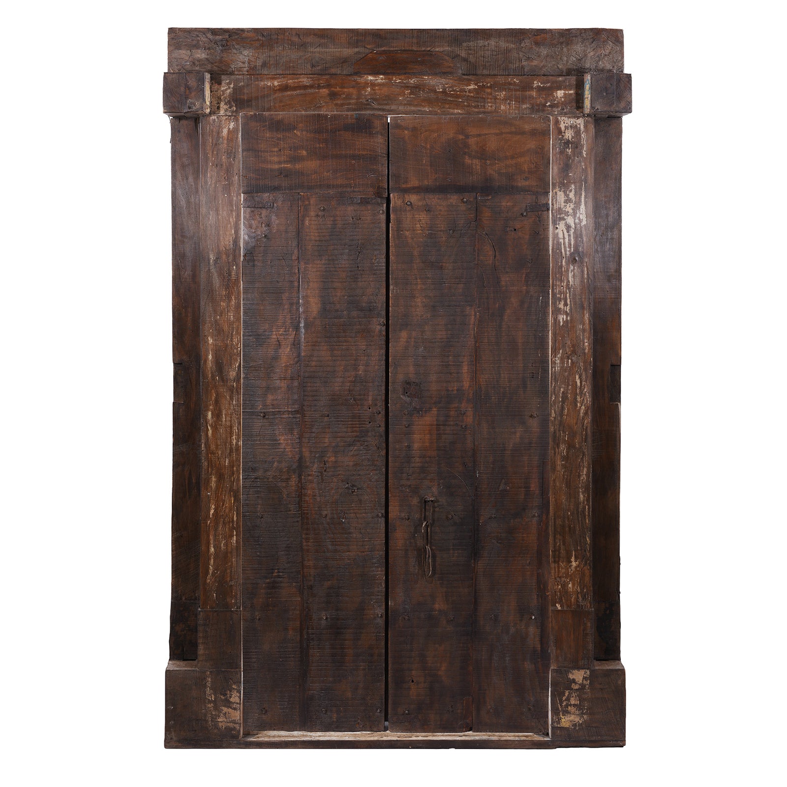 These doors are saved from buildings in India that have fallen into a state of disrepair and are no longer in a repairable state. As with most Indian doors, they would have originally operated on a pin and post system and not on hinges. The frame has been customised to allow for hanging with modern hinges. They would have originally opened inwards.