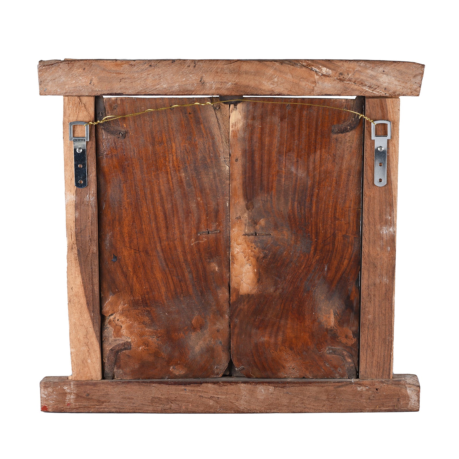 This style of painting on decorative shutters can only be found in Bikaner and the surrounding area. It is a city that is famous for its fine painting of boxes and the interiors of buildings. This shutter would have been plastered into the wall with a cavity for storing keepsakes.