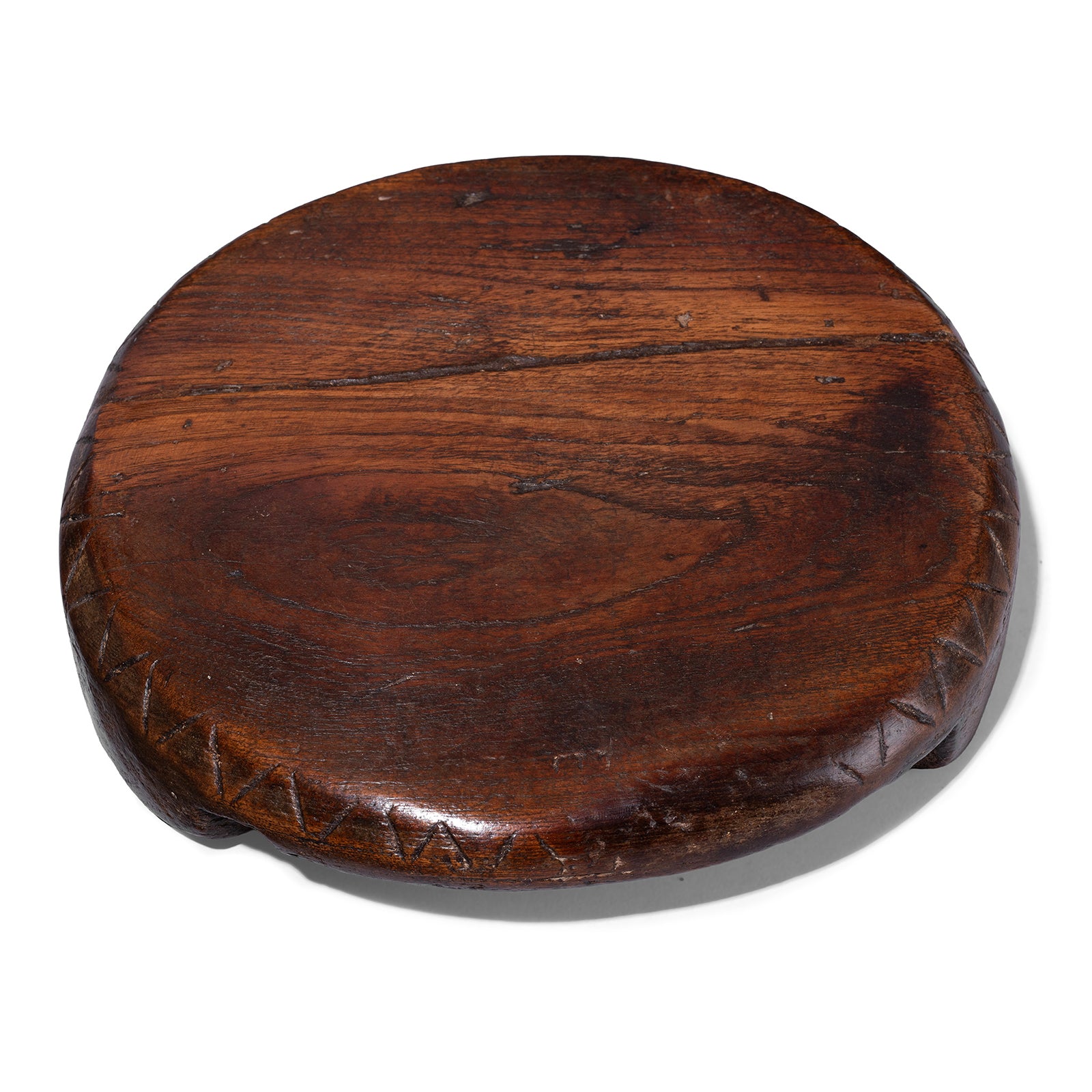 This beautifully patinated teak chapati board originates from Rajasthan and dates to the 19th century. Hand-carved from a solid piece of teak, it was traditionally used for rolling chapatis and other everyday food preparation, forming an essential part of domestic life in rural Indian households. Pieces such as this were valued possessions, often passed down through generations, acquiring a rich surface patina through decades of daily use.