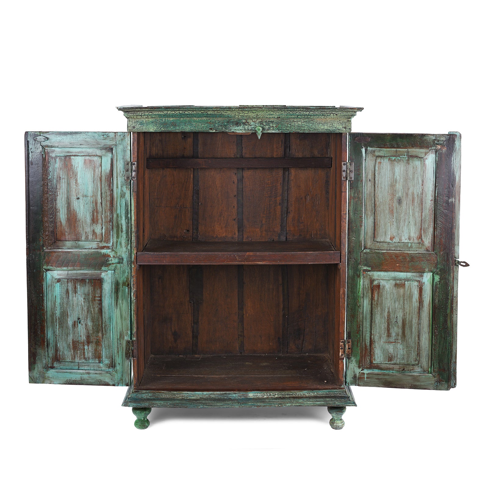 Antique Indian Painted Teak Almirah Cabinet With Sunburst Panels | Indigo Antiques