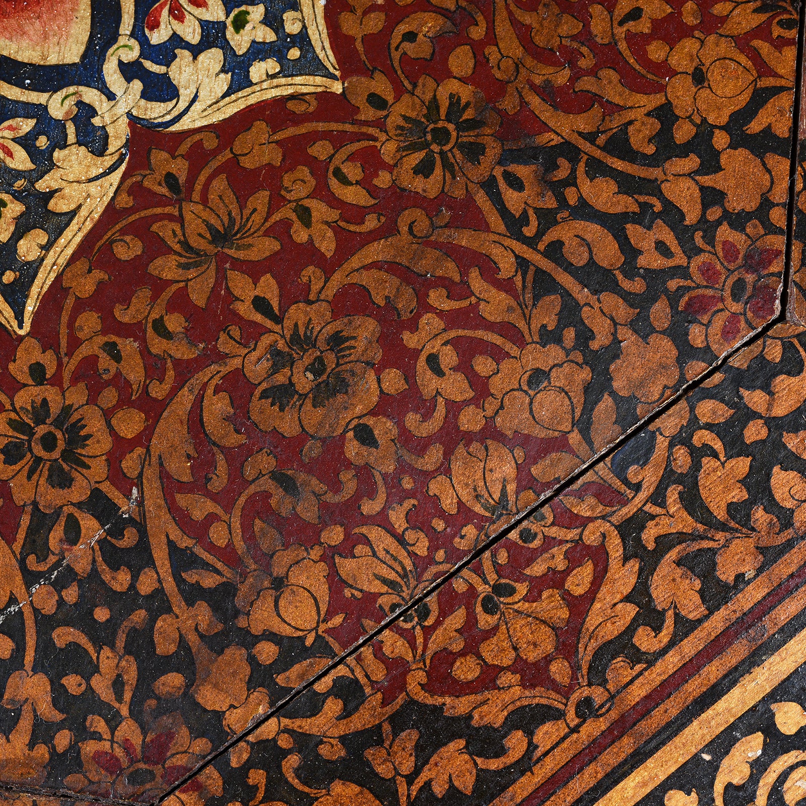 The beautifully detailed original polychrome paintwork is classically Mughal in style and features a lotus mandala, the Nava Padma Mandala, a Hindu design most often associated with the worship of Lord Shiva. The lotus often symbolises purity and rebirth.