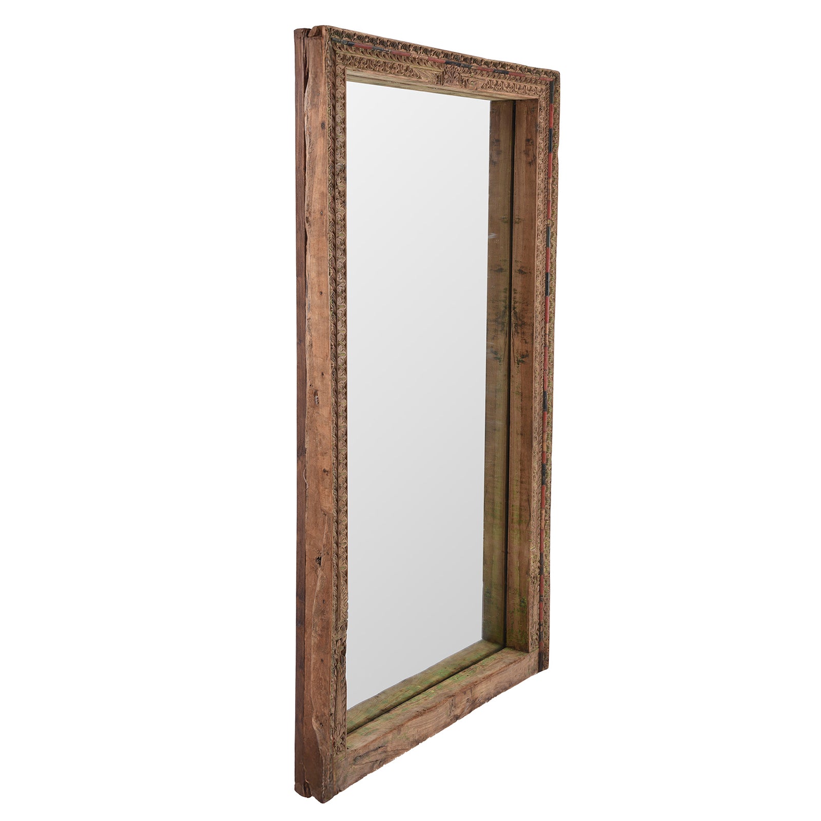 Angled VIew Of Antique Indian Window Mirror From Shekhawati | Indigo Antiques