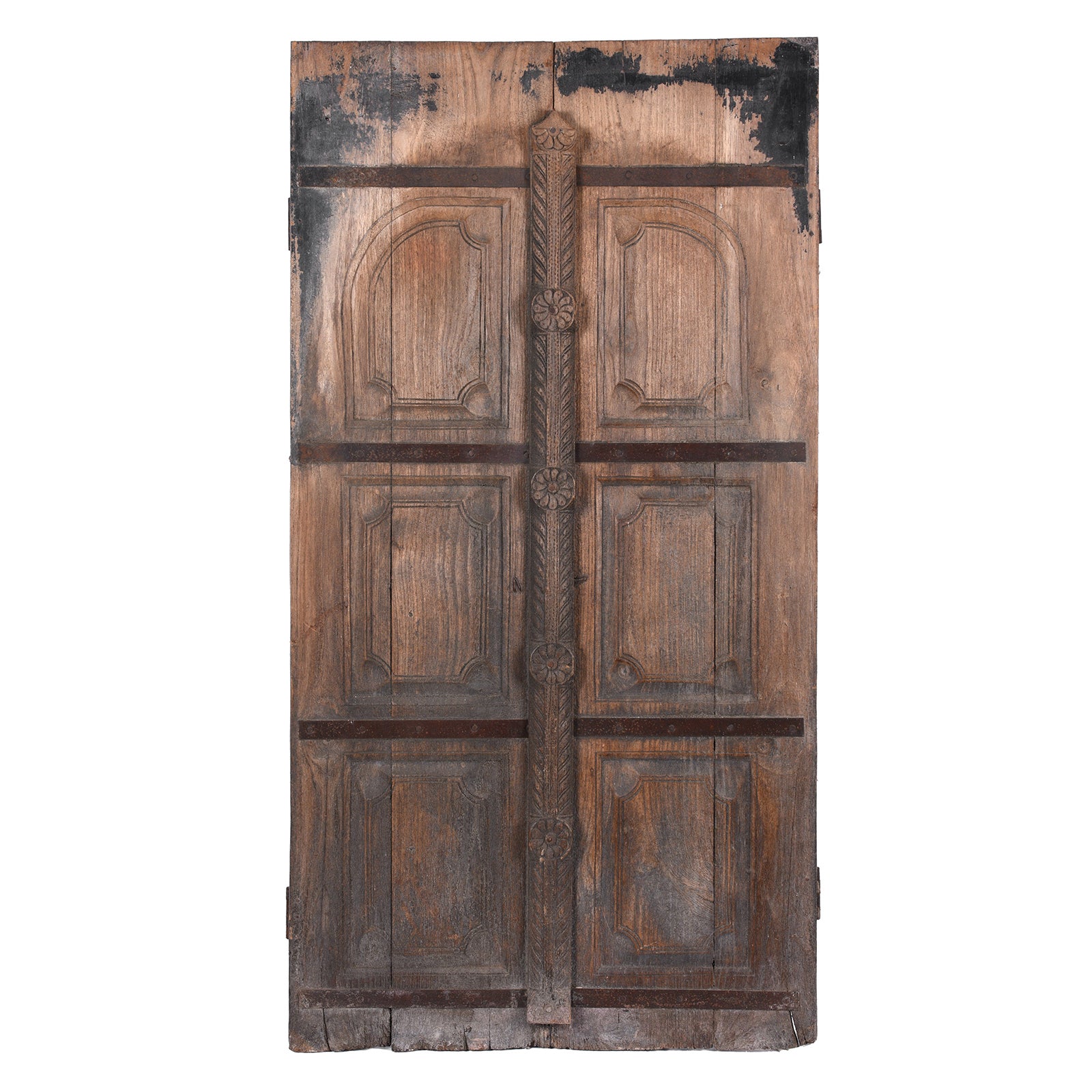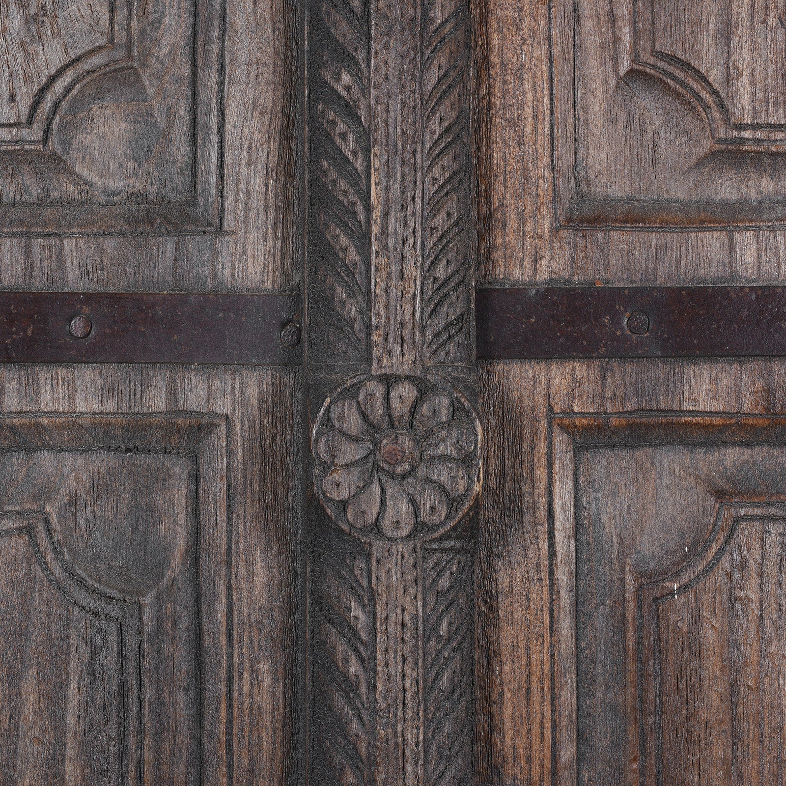 These rustic carved teak wood window shutters are from Andhra Pradesh in South India. This style of slimmer window is popular in the area. It's simple design is complimented by a rustic finish.