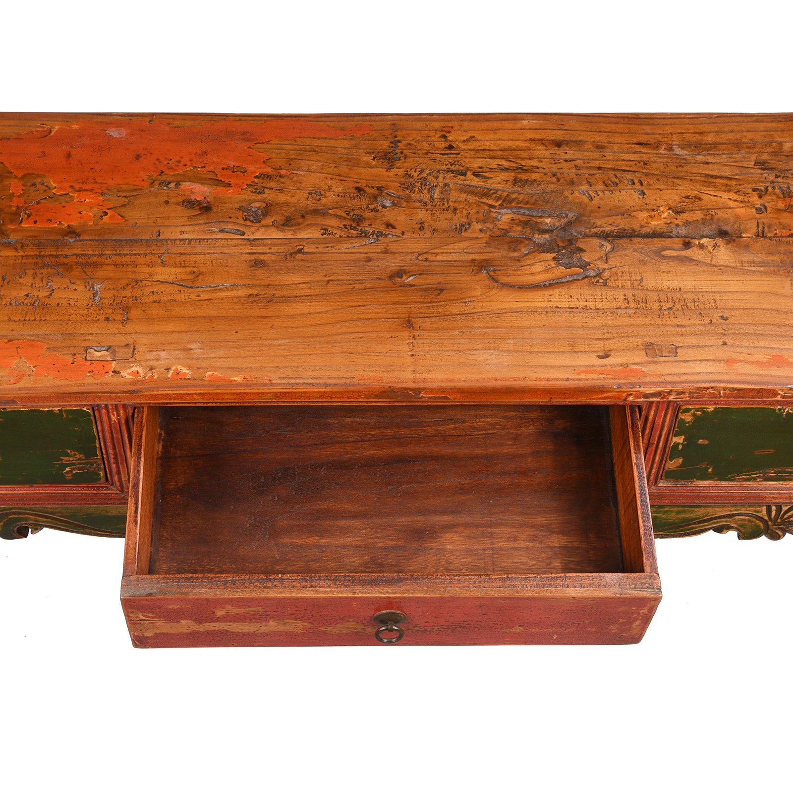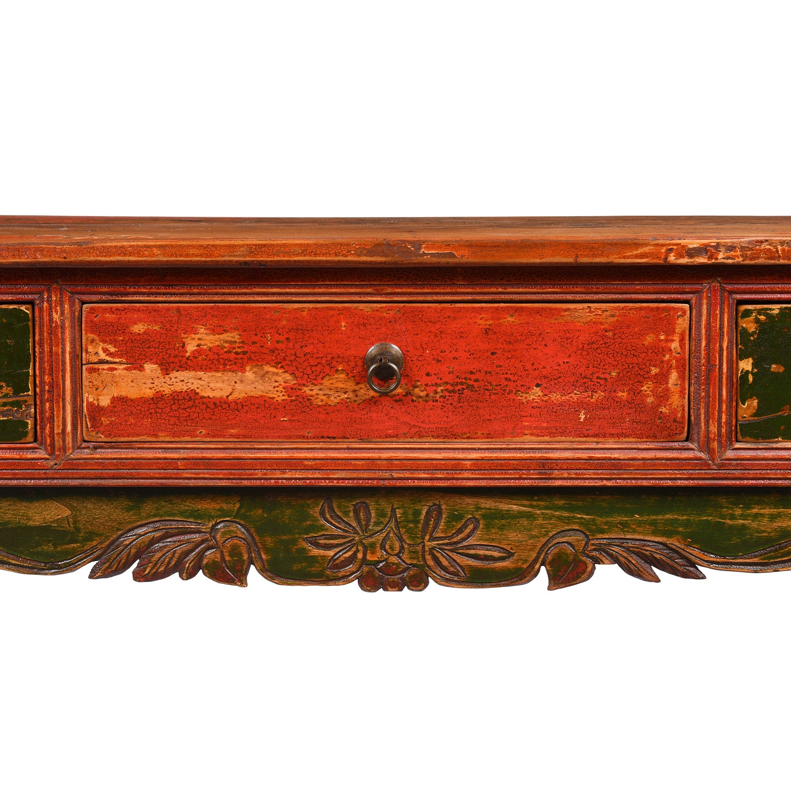 Top detail of a Painted Mongolian Kang Low Cabinet - Late 19thC | Indigo AntiquesDrawer Detail of a Mongolian Kang Low Cabinet - Late 19thC | Indigo Antiques