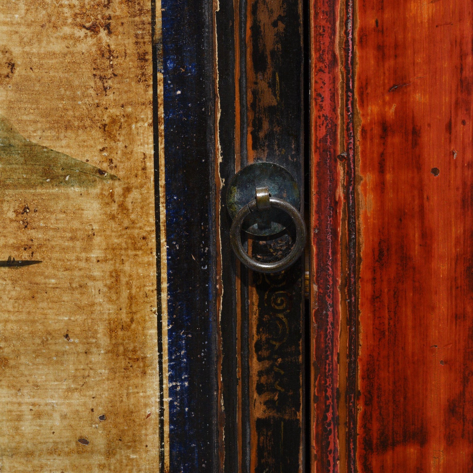 Panel detail from an Antique Chinese Red Painted Sideboard From Qinghai Province - 19thC | Indigo Antiques