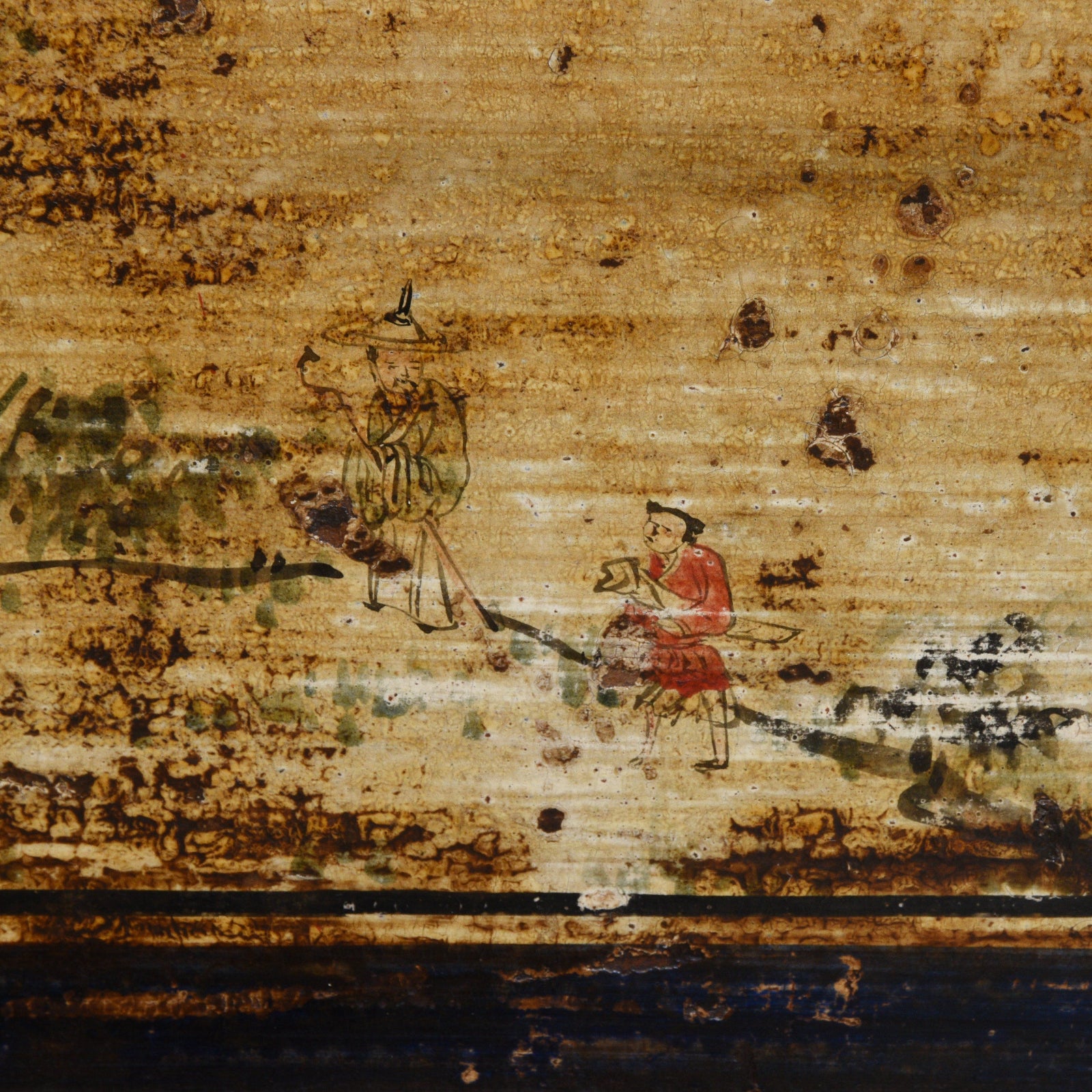 Boating detail from an Antique Chinese Red Painted Sideboard From Qinghai Province - 19thC | Indigo Antiques