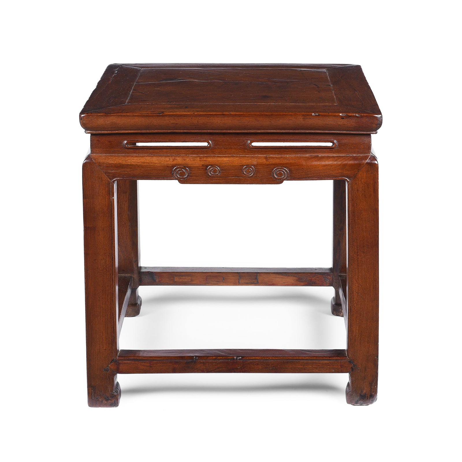 These antique Chinese side tables are made from red elm (jumu) and would have been used as stools or side tables in the 19th century. The style is classic of Jiangsu province, an area that uses predominantly red elm. Red elm (jumu / 榉木), also known as zelkova or 'southern elm' is considered a superior wood to yumu, its northern cousin.
