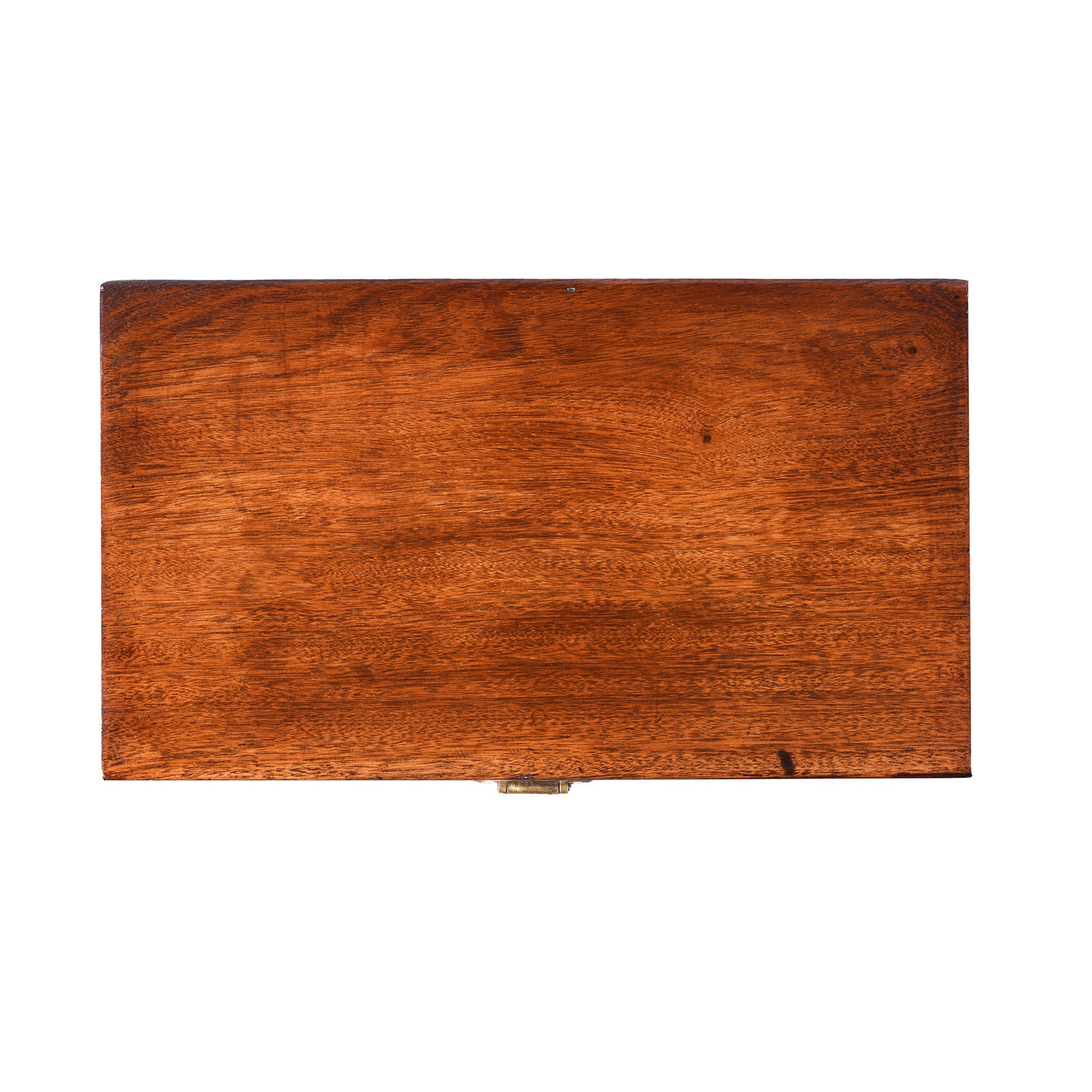 Most of the brass fittings are original, the front lock plate has been replaced with another old brass plate. This box can be particularly prized for its one piece top.