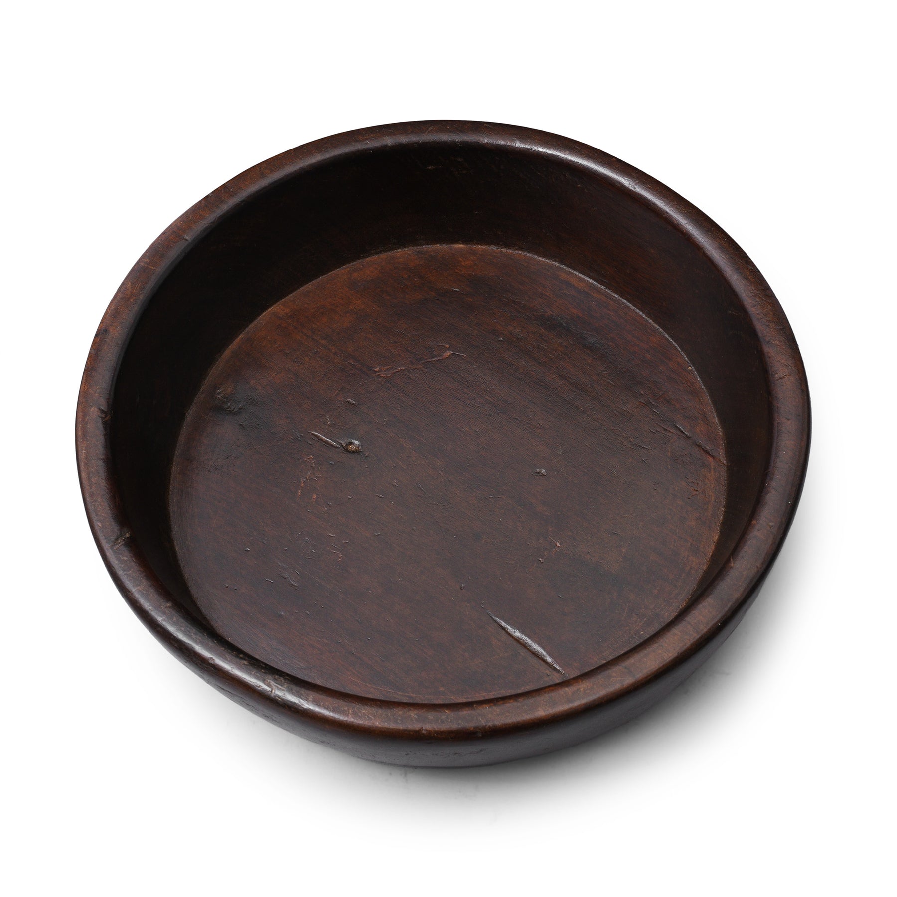 This original Indian parath bowl, crafted in the early 20th century is made from a single piece of sturdy teak. These bowls were traditionally used for mixing dough to create chapatti and paratha bread. The rich patina on our old parath bowls is a result of years of regular use, making them a valuable addition to any kitchen. This one was originally from Rajasthan.