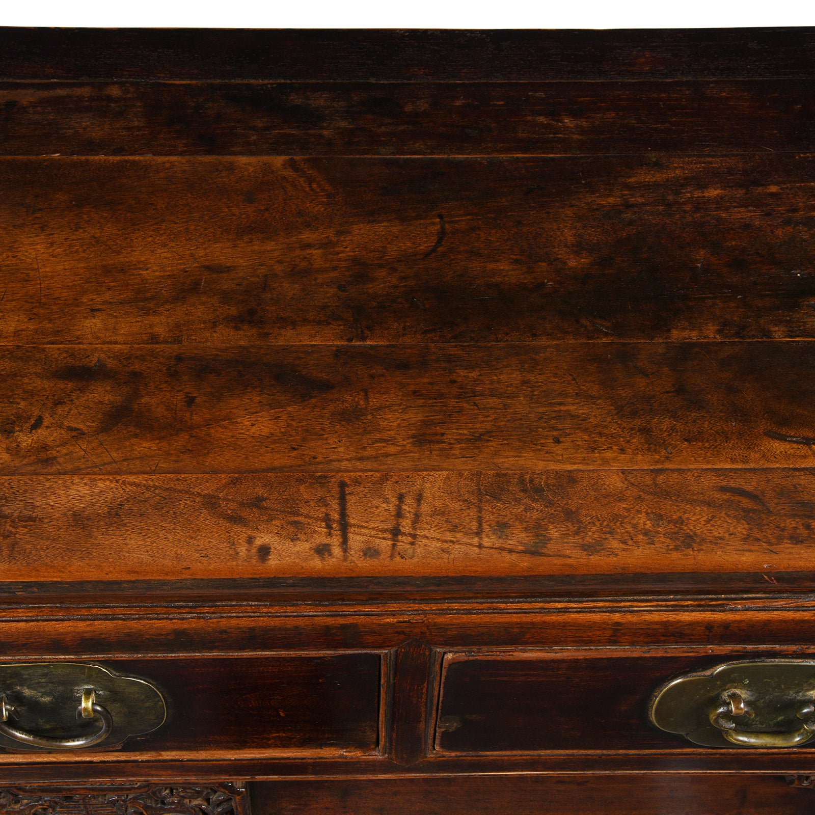 The camphor sideboard From Tianjin, A continuation of a design originally crafted during the Ming Dynasty, hails from the North Chinese port city of Tianjin and its surrounding areas. With a simple yet elegant design, this piece features three drawers and an underside shelf for storage. The central panel is exquisitely carved and the rich patina is a testament to its decades of use.