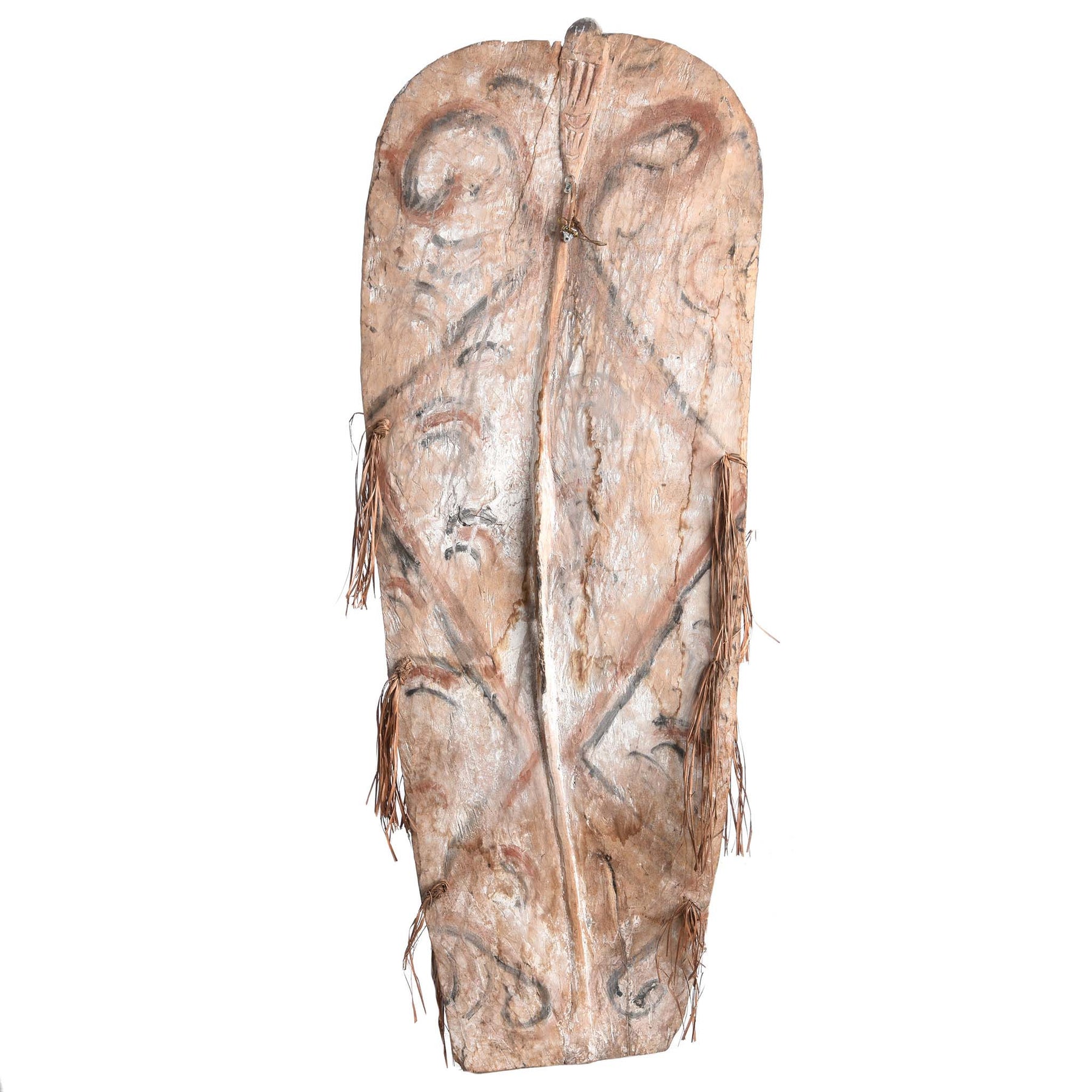 Asmat shields were created as functional items for warfare, and were meant to protect the user from the spears and arrows of his enemy. At the same time, the imagery that is carved and painted on the surface of the shield endows the piece with the power of the ancestors. Wood carving is a flourishing tradition among the Asmat, and wood carvers are held in high esteem. The culture hero Fumeripits is considered to be the very first wood carver, and all subsequent wood carvers have an obligation to continue his work.