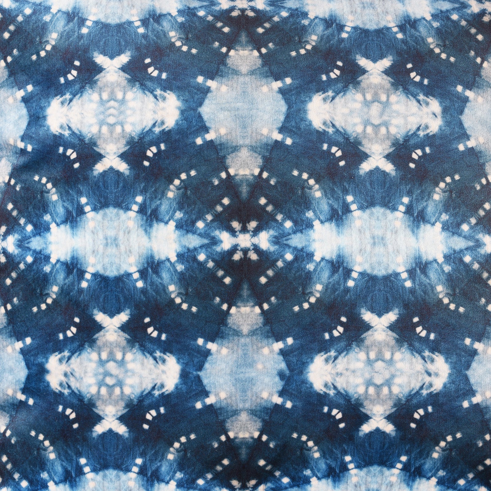This beautiful design uses the 'Itajime' Shibori technique to create the diamond repeat which is then digitally printed onto gorgeous soft pile velvet. The cushion front fabric is soft pile poly velvet with luxurious indigo velvet backing and piping Includes an extra stuffed 100% duck feather-filled cushion pad and concealed zip fastening.