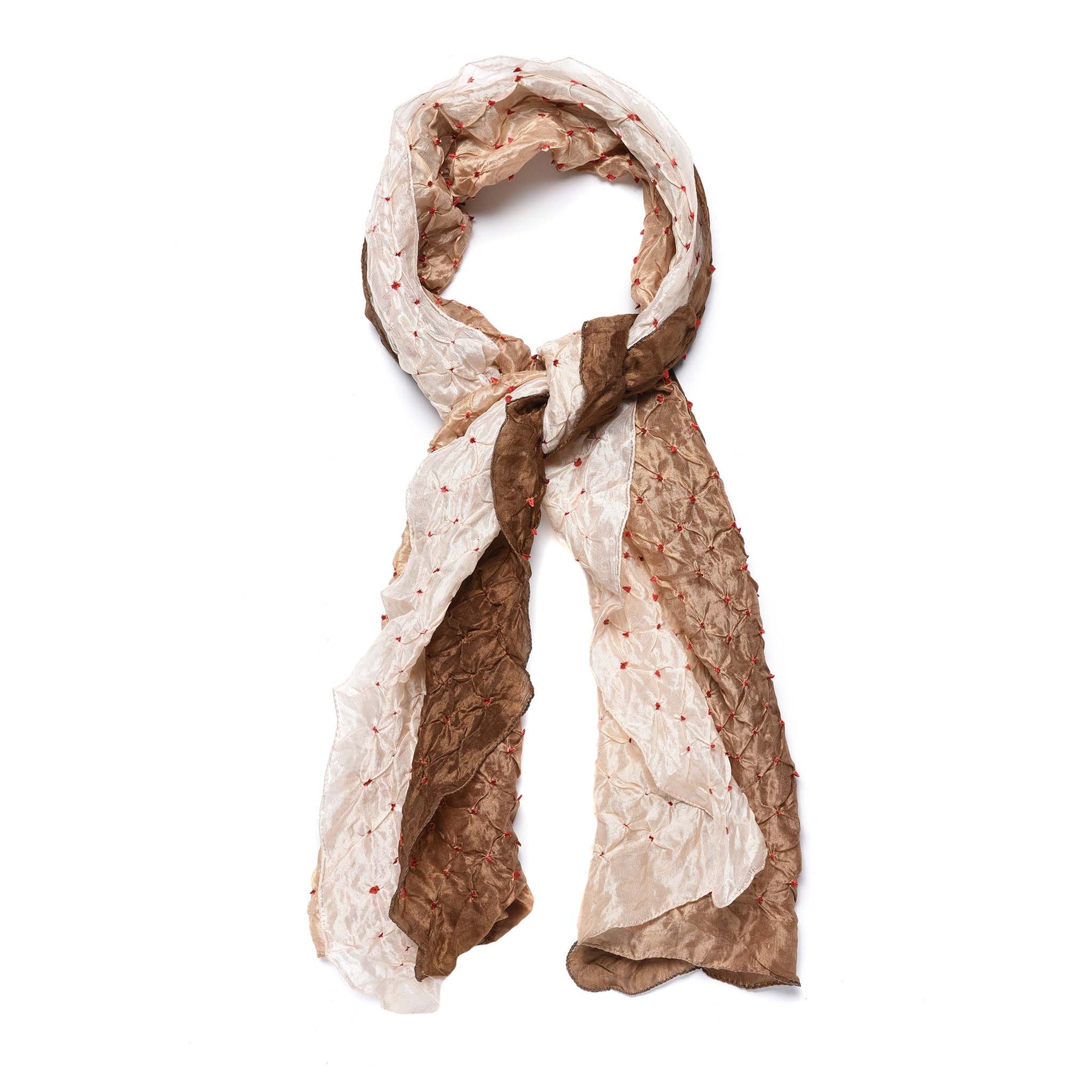 Pearl and Taupe Bandhani Silk Scarf from Rajasthan