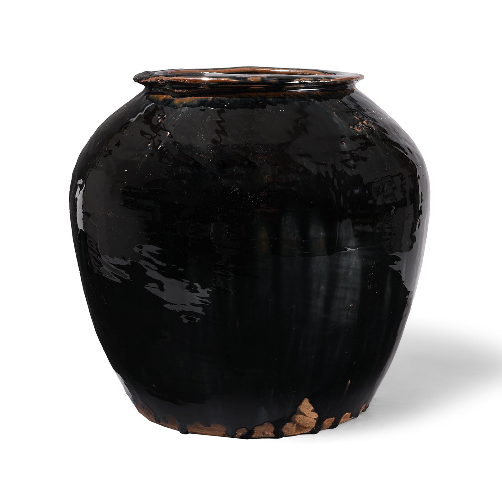 This beautiful, sleek Chinese black glazed vase vessel was used for the storage of liquids and foods such as wine, vinegar, oils and eggs. Nowadays you could use it as a vase or planter for indoor plants. Handmade and hand glazed, the black glaze is iridescent and shimmers in the light. These jars were from Hebei and date to the 19th century.