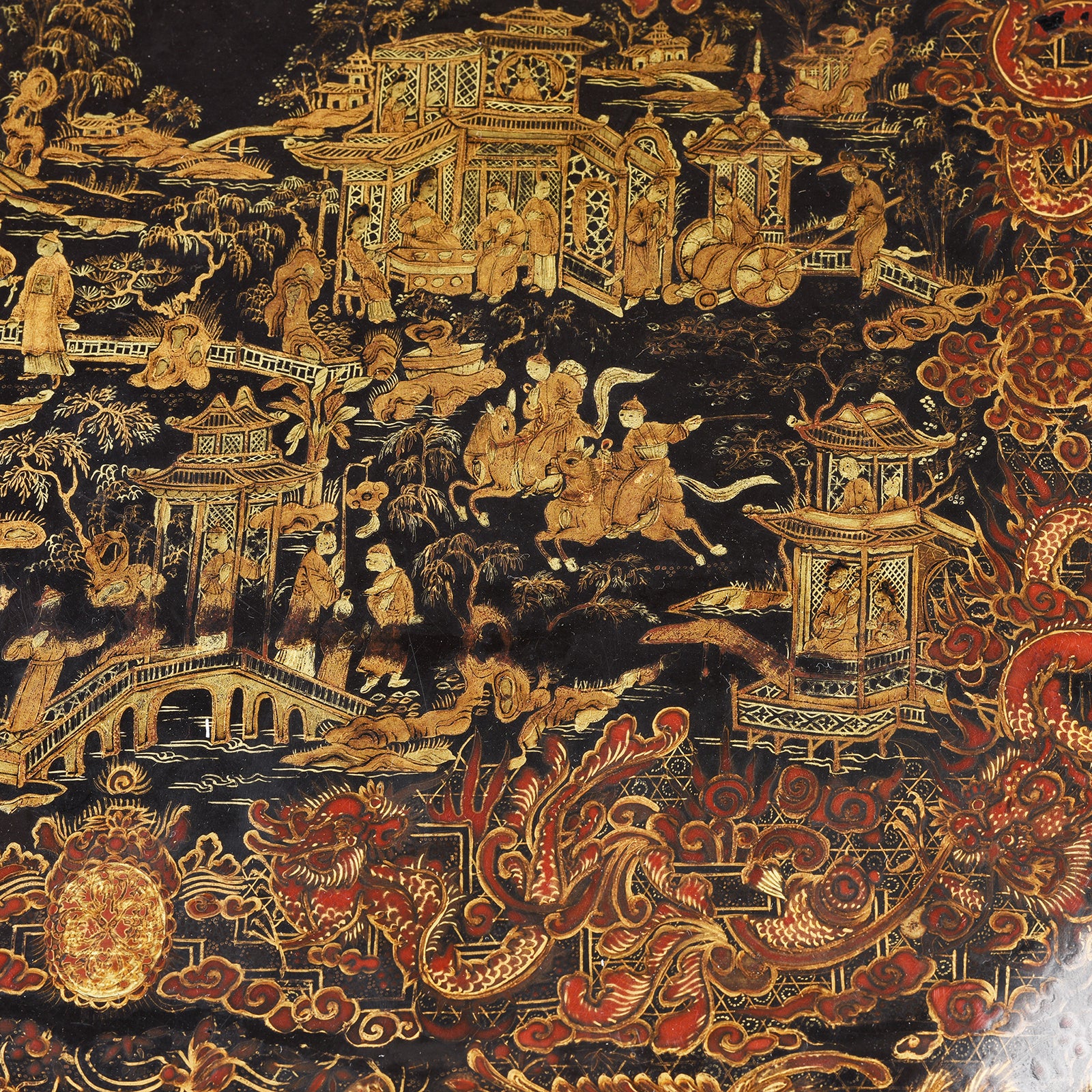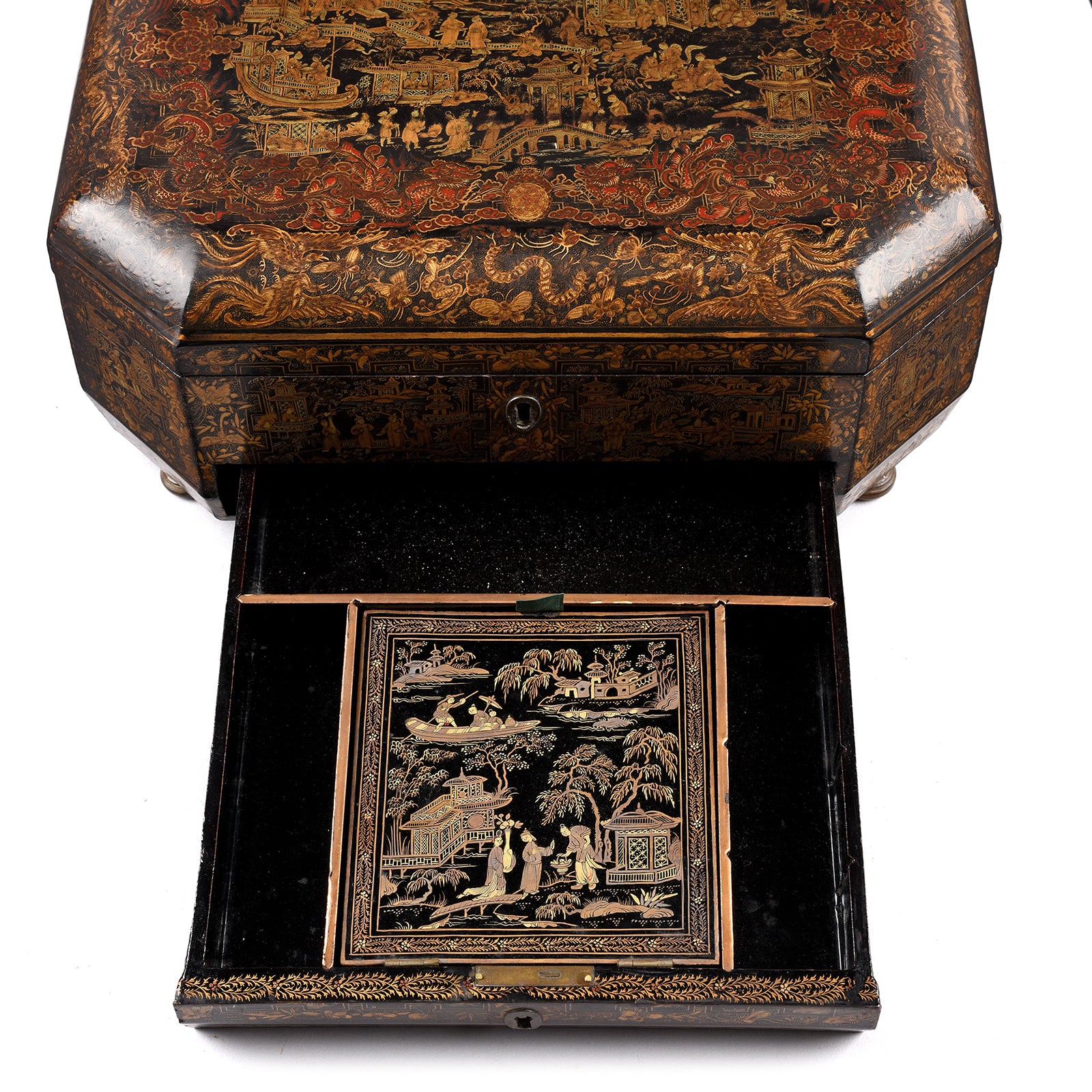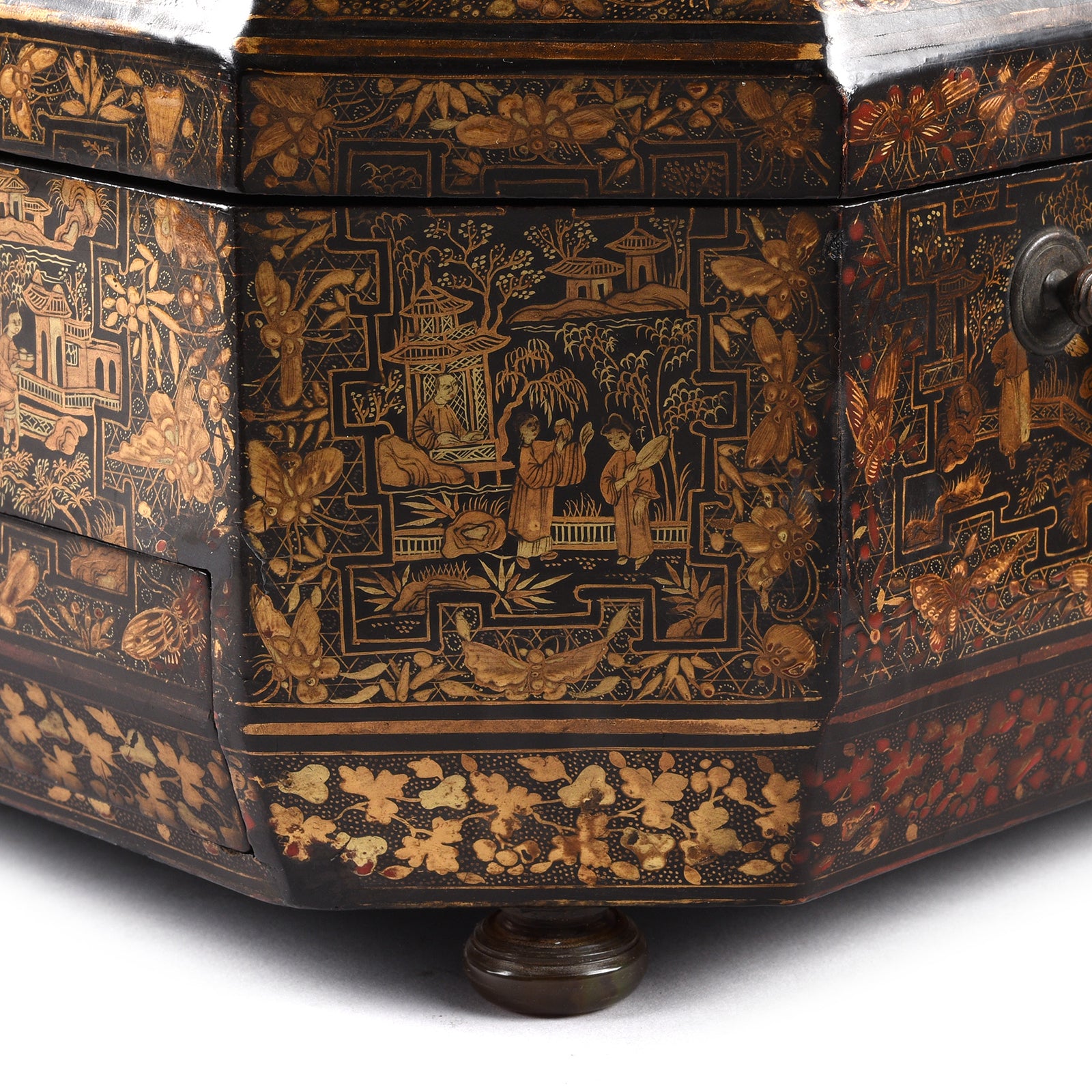 Detail From Antique Black Lacquer Chinoiserie Sewing Box - Early 19th Century | Indigo Antiques