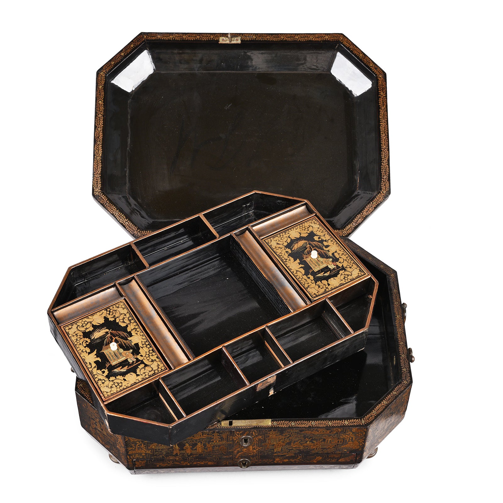 Antique Black Lacquer Chinese Canton Export Sewing Box - Early 19th Century | Indigo Antiques
