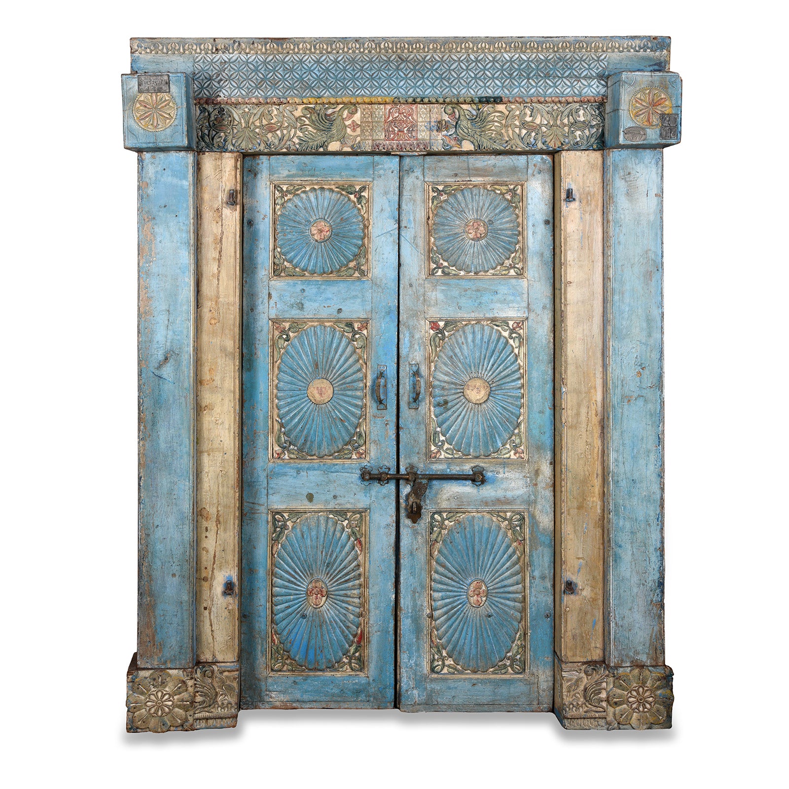 Antique Blue Painted Sunburst Door & Frame From Kutch | INDIGO ANTIQUES