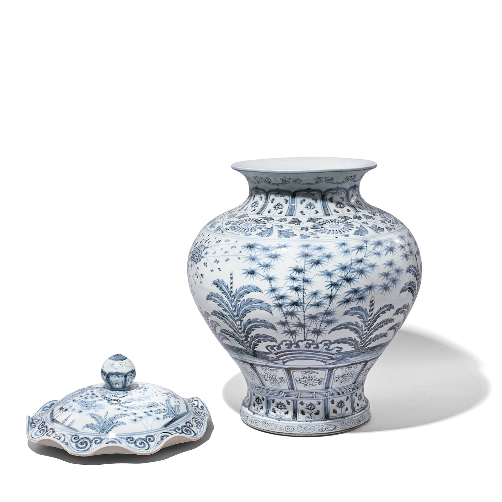 Tree Detail From Blue & White Porcelain Frilled Temple Jar With Lid | Indigo Antiques