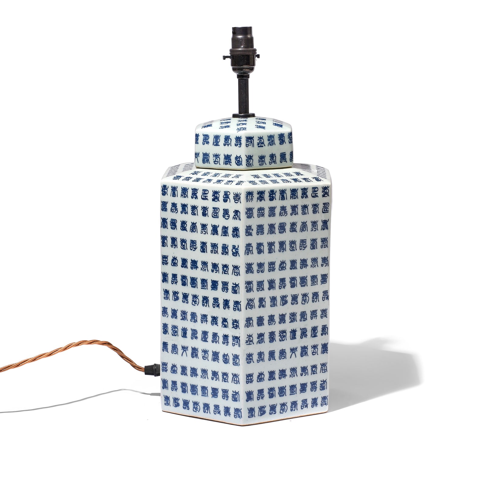 Blue & White Porcelain Hexagonal Tea Caddy Lamp