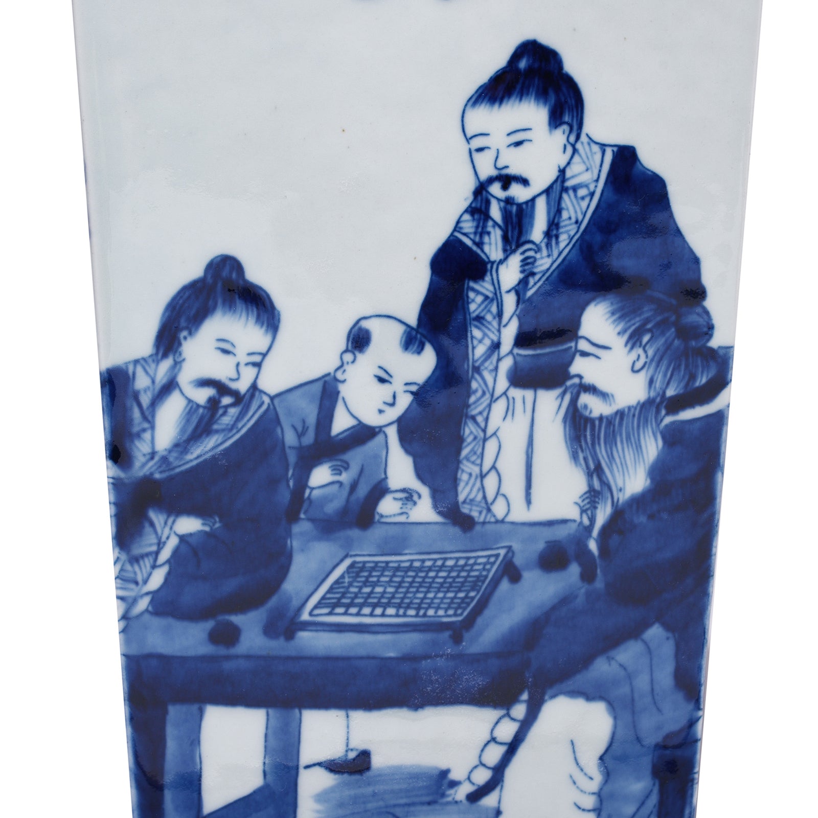 This reproduction Chinese blue & white squared vase has beautifully intricate scenes of the Seven Masters. It is made in the Kangxi style (porcelain produced during the reign of Emperor Kangxi (1662 - 1722). It is hand painted by skilled artists using traditional techniques learnt from their family passed down through generations.