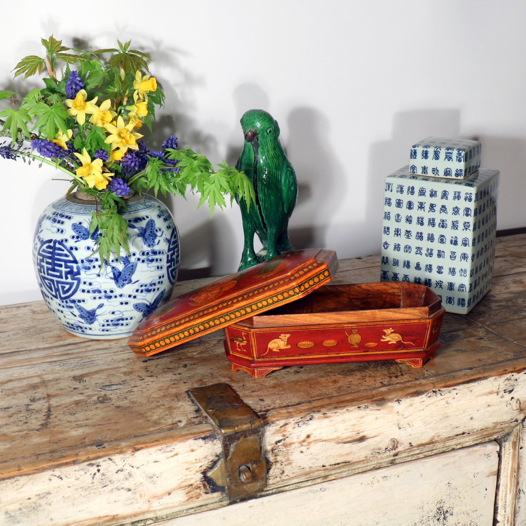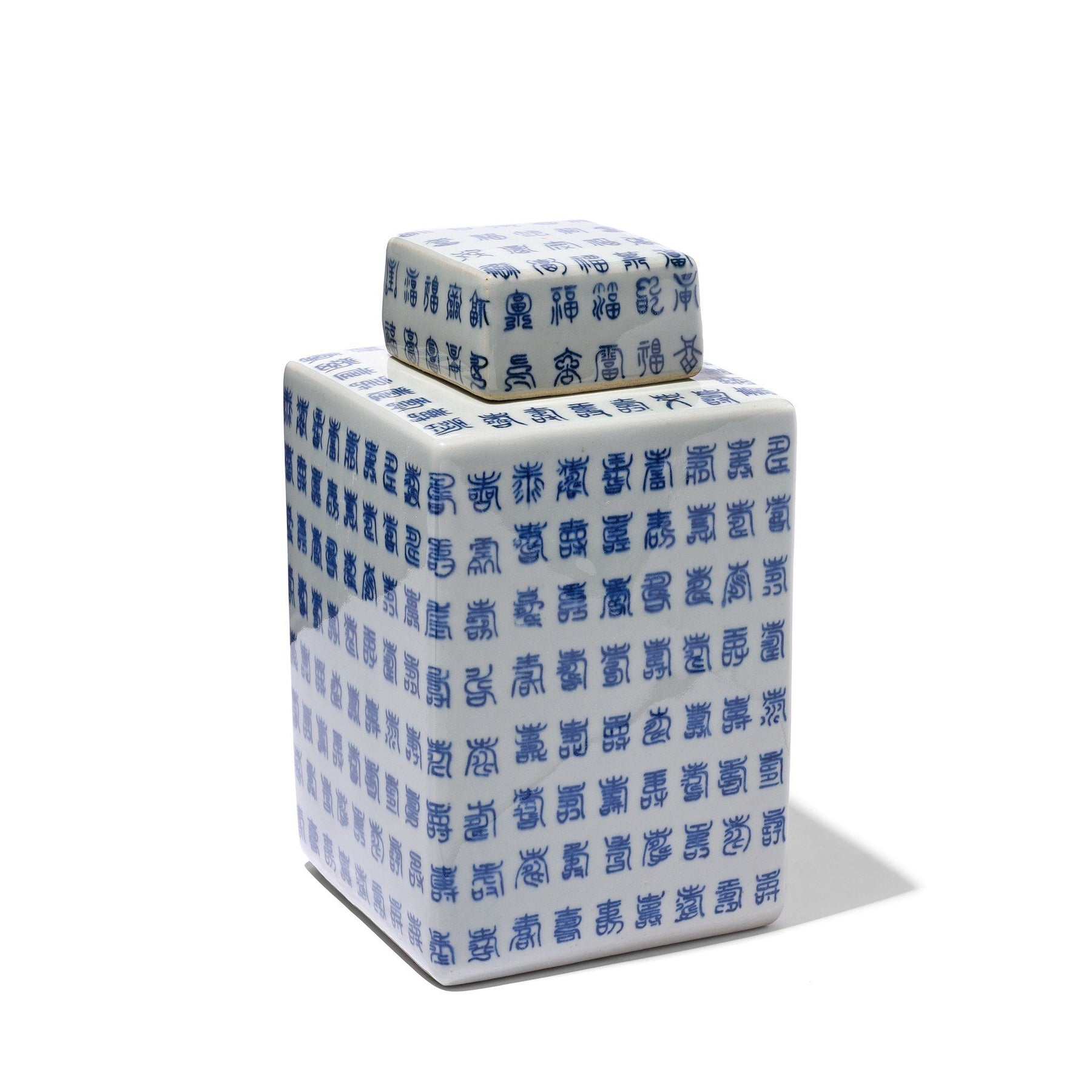 Blue & White Porcelain Tea Caddy - Calligraphy Design