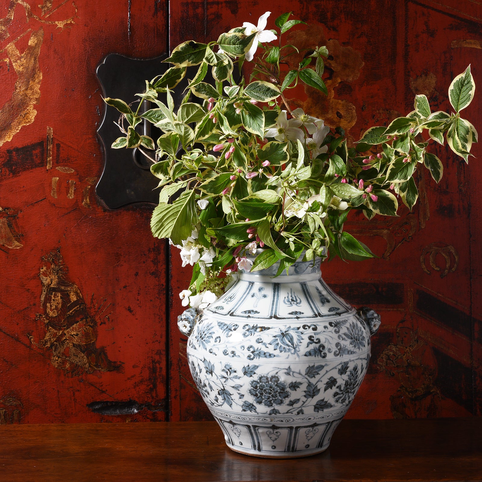Hongwu Blue & White Porcelain Wine Jar - Peonies & Lotus