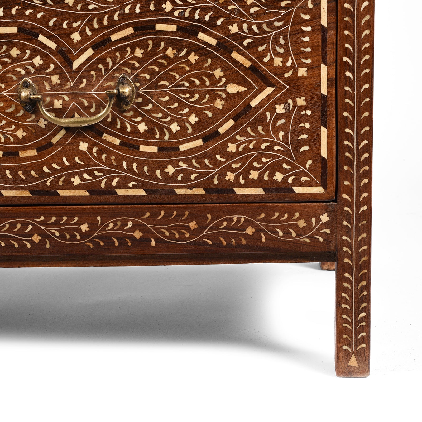 Corner Detail From Vintage Indian Chest Of Drawers - With Later Bone Inlay Work Ca 1920 | Indigo Antiques